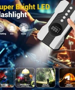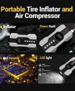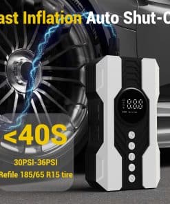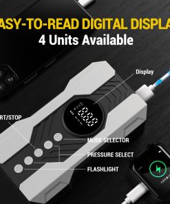 Inflador de neumáticos portátil Kalyoosen, Compresor de aire portátil 200 PSI & 4 veces más rápido para auto, Bomba de aire portátil para neumáticos de coche, Bicicleta eléctrica, Balón de fútbol, Pelota de ejercicio (Blanco) – Este inflador de neumáticos portátil ofrece una capacidad de inflado potente con una impresionante presión máxima de 200 PSI, adecuada para una amplia gama de vehículos. Equipado con un motor de alta velocidad y tecnología de inflado avanzada, este inflador funciona hasta 4 veces más rápido que los estándares convencionales, lo que te permite inflar un neumático de auto estándar en tan solo 5 minutos. Su cilindro de aluminio de 25 mm asegura durabilidad y eficiencia, con excelente disipación de calor para prevenir el sobrecalentamiento. Además, su diseño compacto y portátil lo hace ideal para llevar en tu vehículo y su diseño intuitivo ofrece una operación segura y eficiente en todo momento.