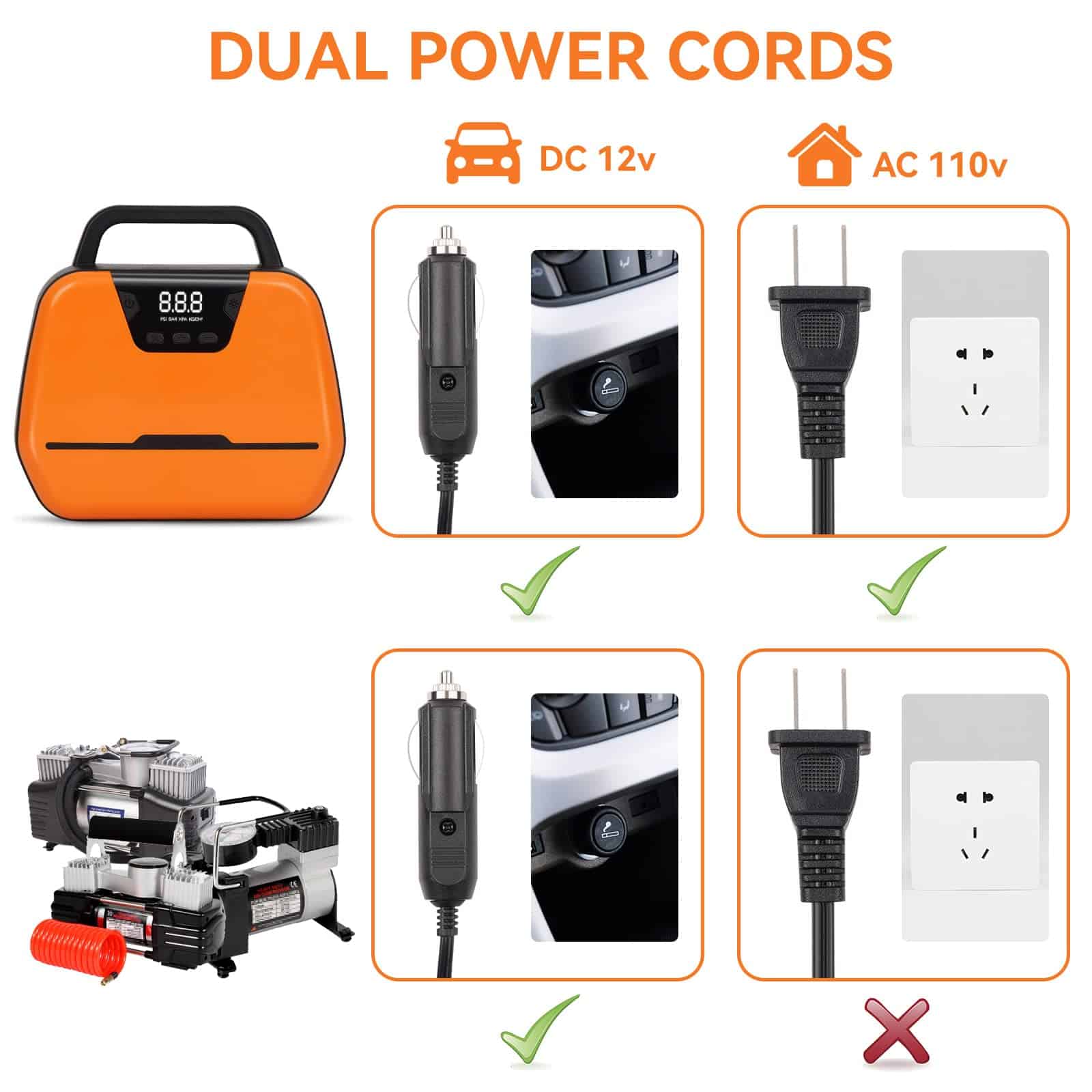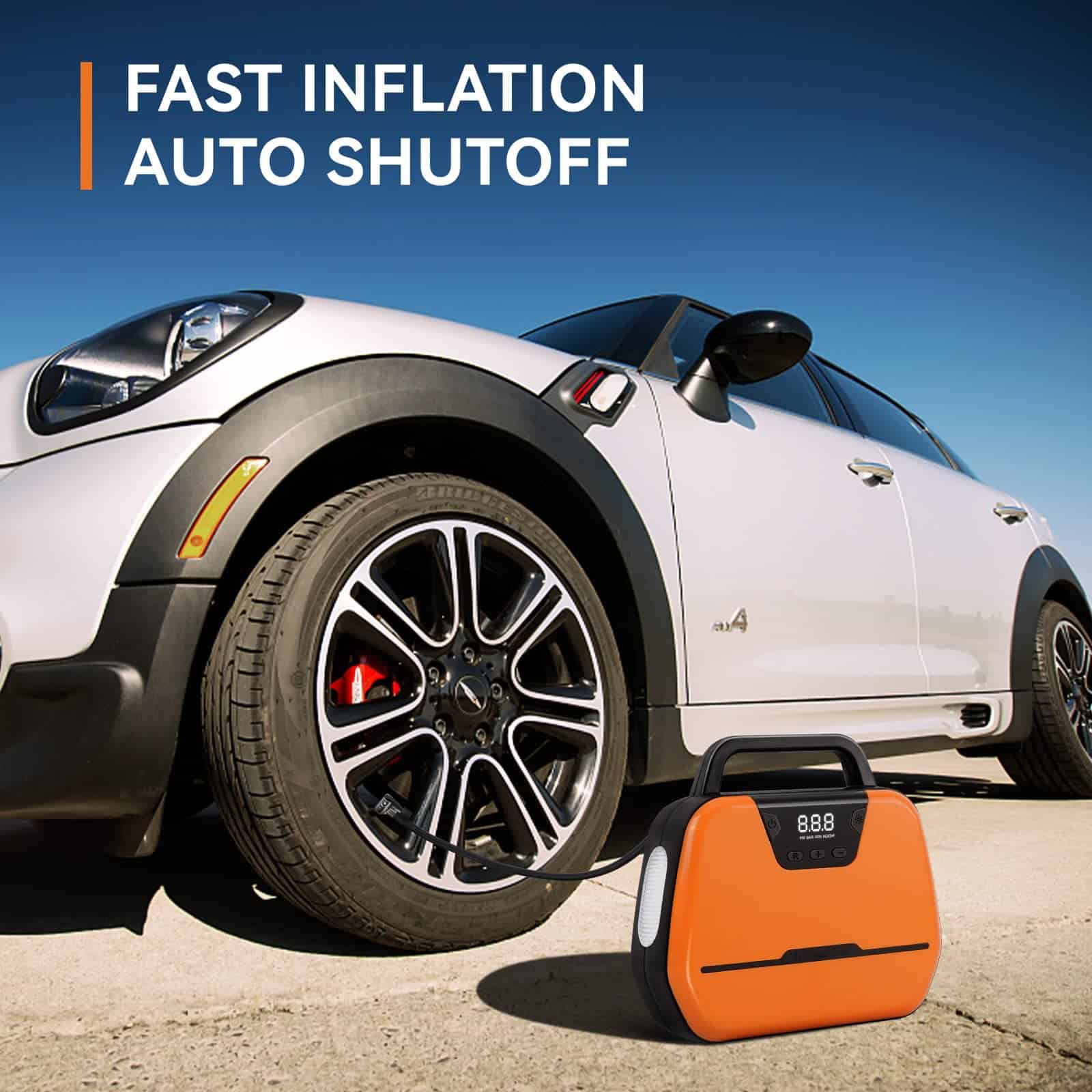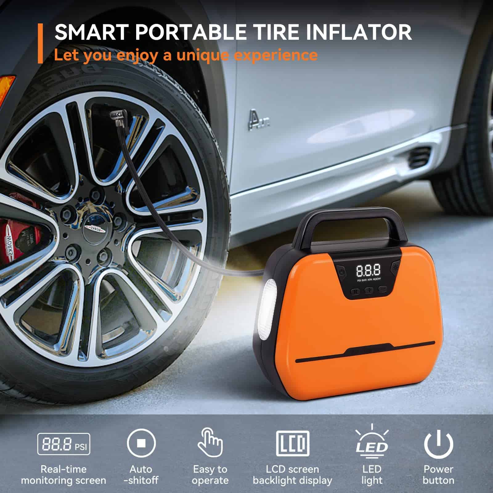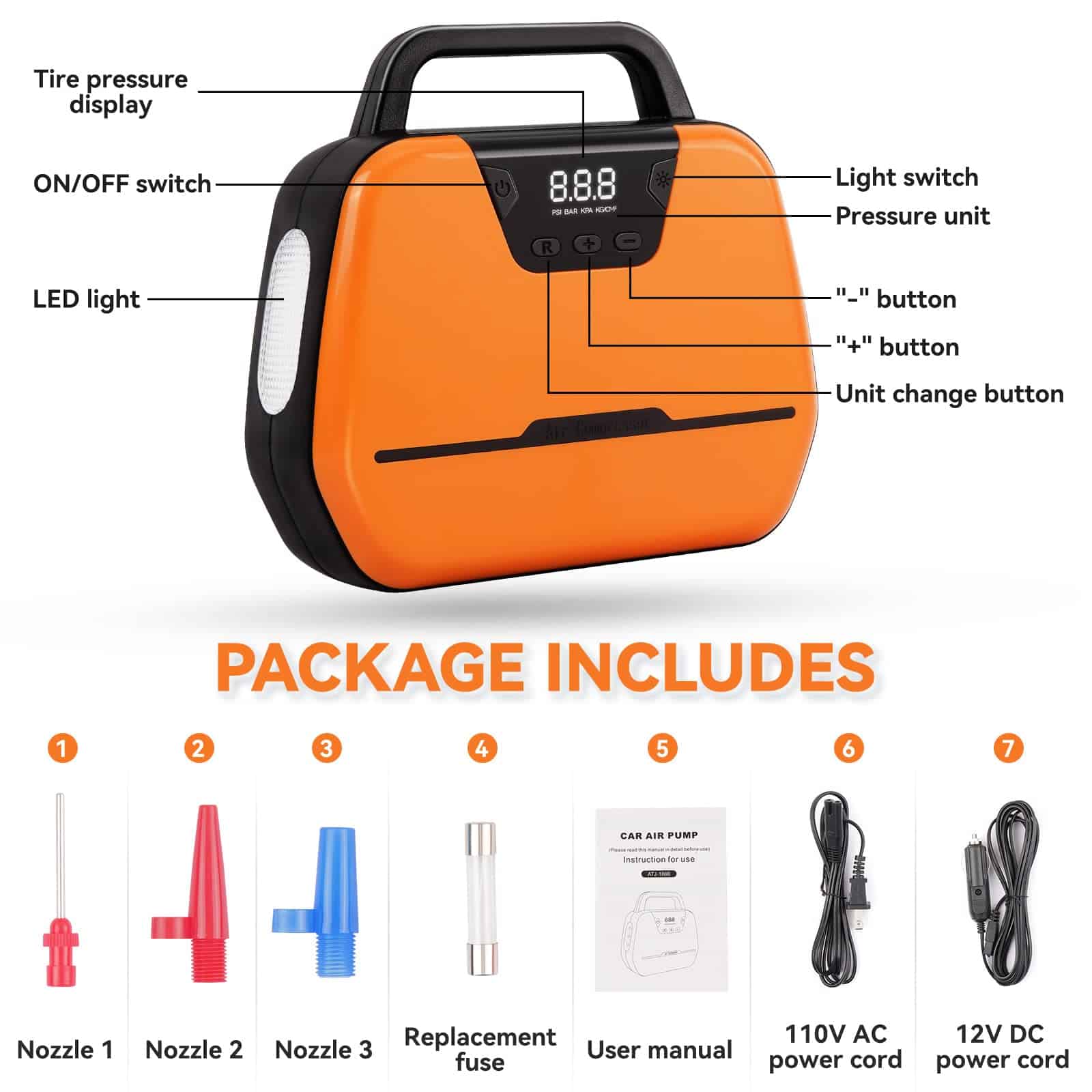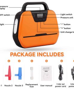 El inflador de neumáticos para automóviles está equipado con luz LED (Tres modos: blanco, rojo y SOS) para un uso conveniente incluso en la oscuridad. Su medidor de presión digital de alta definición te permitirá leer la presión de los neumáticos de forma fácil y precisa (un solo clic para cambiar las unidades de presión entre PSI, kPa, BAR y KG/CM). El inflador de neumáticos para automóviles de Athbavib es una herramienta indispensable para tus viajes en coche, úsalo siempre que lo necesites. Cada unidad se somete a pruebas rigurosas y prácticas para garantizar una durabilidad superior y una calidad duradera. Si tienes algún problema, no dudes en contactarnos.