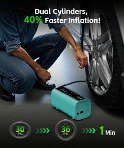 Ingenieramente con un diseño dividido de doble cilindro para una disipación de calor mejorada en un 30%, garantiza una vida útil prolongada. Con un movimiento de cobre puro de la serie 7, ofrece una vida útil 5 veces más larga que la de los competidores. Además, los engranajes de metal proporcionan una vida útil 10 veces más larga en comparación con los engranajes de plástico, asegurando un rendimiento fiable durante años. 3. Gran pantalla LED para una operación sin esfuerzo: dile adiós al esfuerzo con la pantalla LED grande de 8.3 pulgadas de nuestro inflador de neumáticos. Muestra la presión de los neumáticos en tiempo real, la presión preestablecida, el estado de la batería y el modo de inflado, lo que facilita la lectura tanto en la luz solar como en la oscuridad. Amigable para todas las edades, incluidos los ancianos, la pantalla grande y la fuente grande garantizan una operación simple y precisa en todo momento. 4. Comodidad inalámbrica con batería de larga duración: disfruta de la libertad de inflado inalámbrico con nuestro inflador de neumáticos sin cable. Equipado con un puerto Tipo-C compatible con varios cargadores de 5V 2A, ofrece una comodidad incomparable. La batería grande de 6000mAh puede inflar hasta 5 neumáticos con una sola carga, lo que garantiza que estés siempre preparado. También se incluye un cable de alimentación de 12V adicional para uso en emergencias, convirtiéndolo en el último compresor de aire portátil para neumáticos de coche. 5. Presión preestablecida con parada automática y manguera extendida: infle con precisión y facilidad utilizando la función de presión preestablecida de nuestro inflador de neumáticos portátil. Simplemente ajusta tu presión deseada y deja que la función de parada automática haga el resto. No más sobreinflado o subinflado. Además, la manguera extendida de 30 pulgadas es perfecta para vehículos más altos como SUV, eliminando la necesidad de colgar o sacudir la bomba. 4 Modos con Parada Automática garantizan un rendimiento versátil y fiable para todas tus necesidades de inflado.