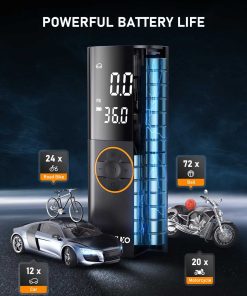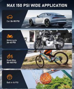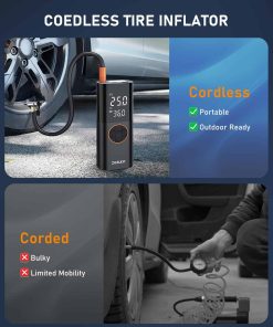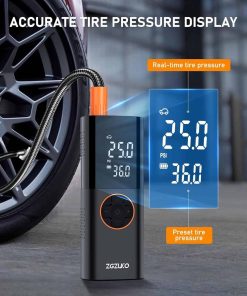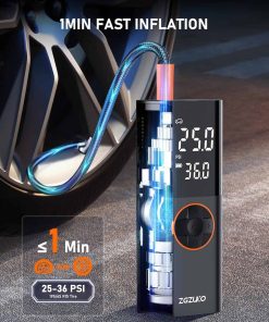 Inflador de neumáticos ZGZUXO Compresor de aire portátil – 150 PSI Bomba de aire sin cable rápida para neumáticos de coche, bomba de neumáticos para bicicletas con medidor de presión digital, luz LED para automóviles, bicicletas, pelotas y más. El Inflador de neumáticos sin cable ZGZUXO (Modelo CZK-3691) llena un neumático estándar (195/55/R15) de 29 a 36 PSI en solo 2 minutos. Diseñado para autos, bicicletas, motocicletas e incluso pelotas deportivas, esta bomba de aire ofrece un flujo de aire constante perfecto para el uso diario, viajes por carretera y emergencias. Comodidad sin cables en cualquier lugar: Diseñado para una máxima facilidad de uso, este compresor de aire portátil funciona sin cables para un total libertad. Una carga completa admite múltiples inflados de neumáticos, convirtiéndolo en un compañero confiable para desplazamientos, campamentos o ayuda en carretera. Sin cables enredados, solo agarra e infla donde sea que estés. Control inteligente de presión con parada automática: Verifique la presión de sus neumáticos en tiempo real en la brillante pantalla LCD. Simplemente configure su PSI objetivo y presione iniciar la bomba se detiene automáticamente una vez que alcanza su número. Ideal para nuevos conductores o cualquier persona que desee un inflado sin estrés sin sobrecargar. Modos personalizados y diseño listo para la noche: Con 5 ajustes de inflado (incluido un modo personalizable que recuerda su última configuración), puede inflar neumáticos, pelotas deportivas u objetos inflables con solo un clic. La luz LED incorporada le ayuda a trabajar con confianza en garajes oscuros o en carretera por la noche. Compacto, duradero y siempre listo: Elegante, liviano y lo suficientemente resistente para el uso diario, esta bomba de aire cabe fácilmente en su guantera o mochila. Ya sea en casa, en un viaje por carretera o fuera de la red, es la solución compacta en la que puede confiar, no es necesario depender nunca más del aire de la gasolinera.
