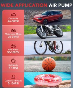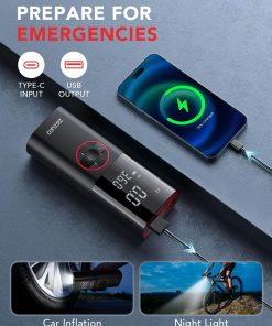Este inflador de neumáticos está diseñado con un medidor de presión digital avanzado para un monitoreo en tiempo real con una pantalla LCD dual, asegurando precisión. La función de presión preestablecida le permite establecer la PSI deseada, mientras que la función de apagado automático evita la sobreinflación, garantizando la seguridad y el rendimiento óptimo del neumático. Ya sea que esté usando este inflador de aire para neumáticos de autos, un inflador de pelotas o un inflador de bicicletas, ofrece una inflación precisa y sin preocupaciones cada vez. Compacto pero potente, este compresor de aire para neumáticos de automóviles está diseñado para un fácil almacenamiento y portabilidad, encajando perfectamente en su auto, mochila. ¡Compacto suficiente para cualquier viaje! Ya sea que esté en un viaje por carretera, acampando o manejando un neumático pinchado inesperado, este inflador de neumáticos portátil está siempre listo para usar. Este inflador de neumáticos portátil ofrece el equilibrio perfecto entre tamaño y potencia, asegurando que sus neumáticos se mantengan correctamente inflados en cualquier momento, en cualquier lugar. Este compresor de aire portátil para neumáticos de automóviles cuenta con cuatro modos de inflado preestablecidos adaptados, garantizando una inflación precisa y sin problemas. El quinto modo personalizado le permite establecer manualmente la presión deseada para cualquier objeto inflable, dándole control total. Con 4 unidades de presión disponibles, cambiar entre ajustes es sencillo. Un elemento esencial para el uso diario, viajes por carretera y aventuras al aire libre. Inflación con un clic para todo. Diseñado para una operación fácil, este inflador de neumáticos incluye inflado con un toque y una interfaz intuitiva para un uso sin problemas. Además de servir como un compresor de aire portátil, este inflador de aire incluye una luz LED con tres modos (SOS, constante, intermitente) para su uso en condiciones de poca luz y emergencias. La parte superior también incluye un puerto de carga tipo C y un puerto de salida USB de 5V/2A, lo que le permite servir como una fuente de alimentación de emergencia para dispositivos electrónicos.