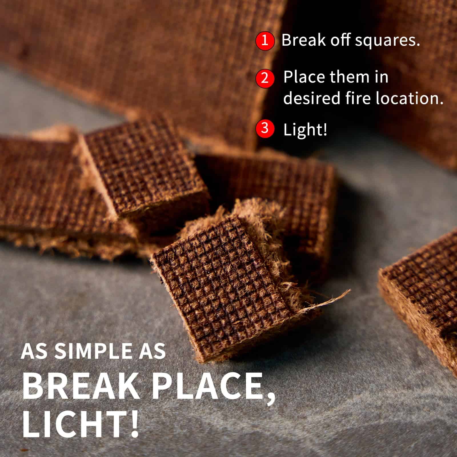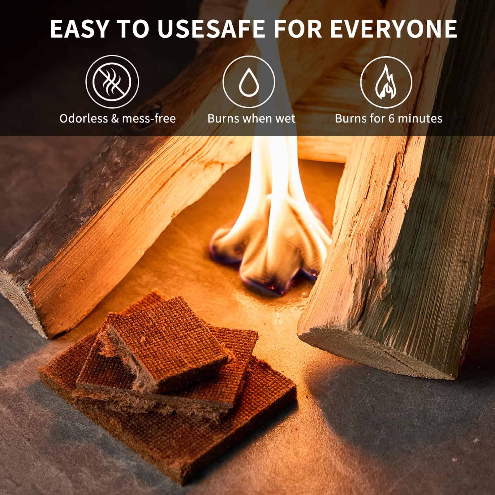 2. RENDIMIENTO DE INICIADOR DE FUEGO A PRUEBA DE AGUA – Los cubos de iniciador de fuego diseñados se encienden instantáneamente en la lluvia, nieve o viento. La solución de iniciador de fuego definitiva para chimeneas, parrillas de BBQ, estufas de leña y configuraciones de fogatas. Nunca más luches con troncos de iniciadores de fuego húmedos.