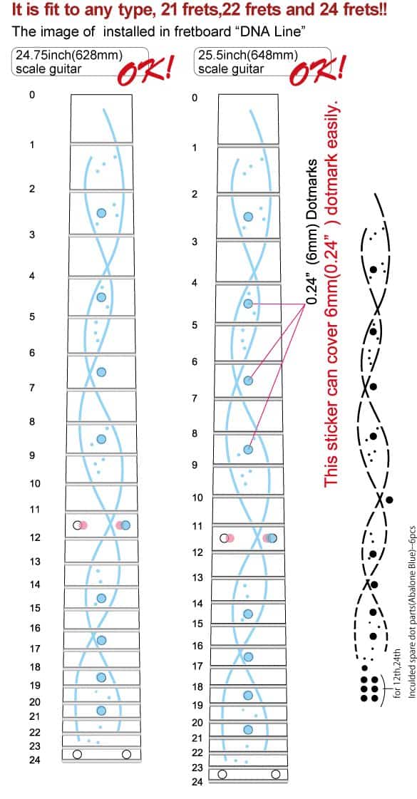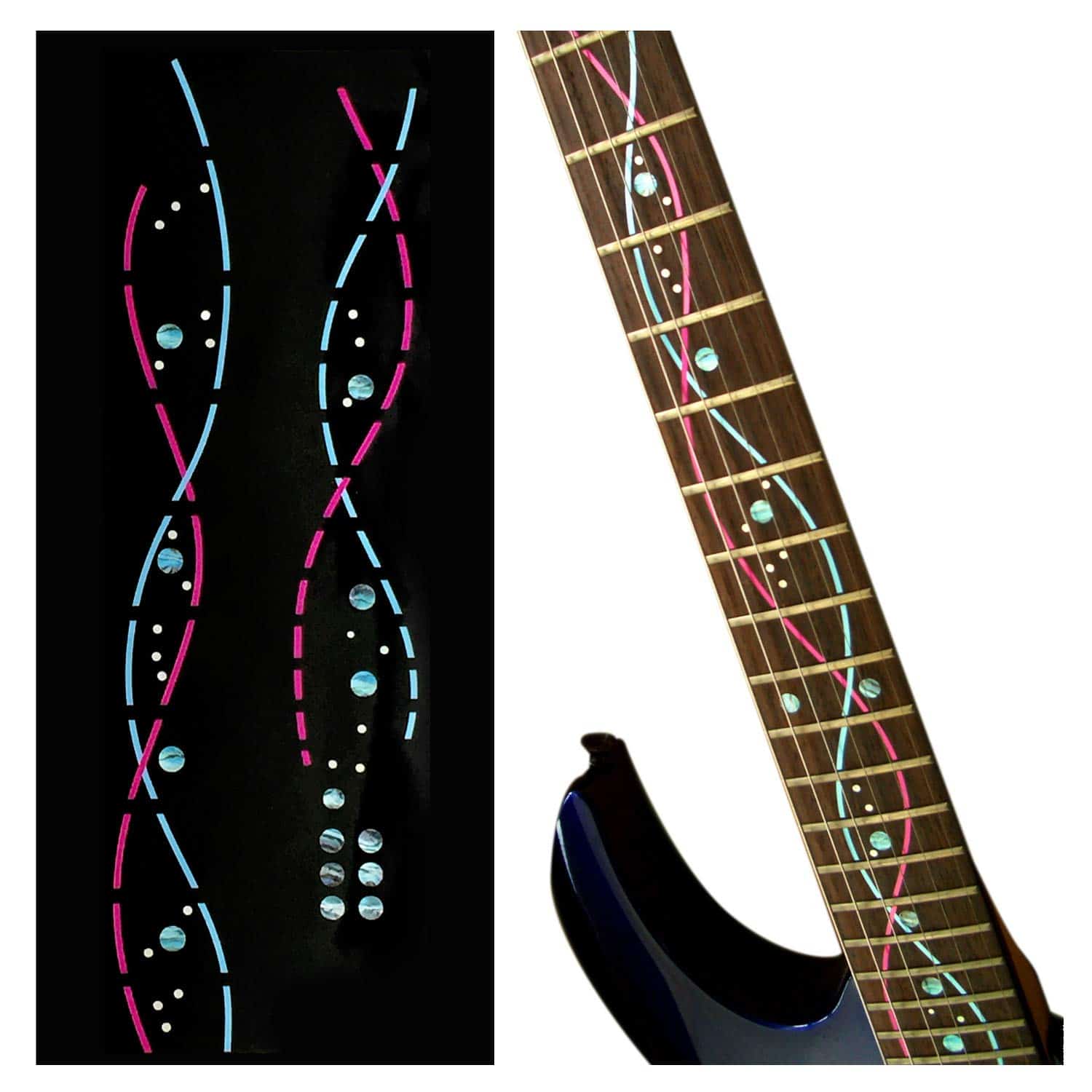 ¡Se ven como incrustaciones reales! ¡Fáciles de aplicar y quitar! ¡Las pegatinas de incrustaciones son SUPER-DELGADAS y removibles! ¡Puedes modificar tu guitarra tan fácilmente! ¡No se engancharán con tus dedos al tocar! Es posible usar spray de ayuda para los dedos o aceite de limón después de aplicar las pegatinas. No quedará pegamento después de retirar la pegatina.
