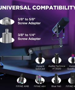Eleva tu espacio de trabajo con nuestro elegante brazo de micrófono de perfil bajo, diseñado para integrarse perfectamente con tu configuración de escritorio. Con su diseño minimalista, este brazo se esconde discretamente debajo de tu monitor, asegurando una vista despejada de tu entorno. Di adiós al desorden y hola a un espacio de trabajo limpio y profesional. Experimenta una flexibilidad sin igual con nuestro brazo de micrófono completamente ajustable. Extensible hasta 25.6 pulgadas, ofrece una cobertura completa para cualquier configuración de grabación o transmisión. Con un rango de ajuste vertical de 250 y una rotación horizontal de 360 , tienes la libertad de posicionar tu micrófono precisamente donde lo necesitas para un rendimiento óptimo. Fabricado en acero sólido de aleación, el soporte para micrófono InnoGear MU-LP26 combina durabilidad con funcionalidad. Con una capacidad de carga máxima de 1.5 kg (3.3 lbs), soporta sin esfuerzo tu configuración de micrófono mientras garantiza una conexión segura. El montaje es rápido y sin problemas: simplemente inserta el brazo en el soporte de la mesa y aprieta la perilla para una configuración estable y confiable. La pinza tipo C segura, fabricada en una aleación resistente, garantiza una estabilidad firme tanto para tu micrófono como para la configuración de tu escritorio. Diseñada con un área de contacto amplia y relleno de goma, se asegura de que no se marquen ni se rayen escritorios de hasta 2.75 pulgadas de grosor, protegiendo contra marcas o rayones. Disfruta de ajustes sin problemas y libres de ruido durante sesiones de grabación o transmisión, gracias a su operación impecablemente suave y agarre firme. Además, la pinza sirve como un práctico gancho para auriculares para añadir versatilidad. Diseñado para acomodar una amplia variedad de micrófonos, este soporte de micrófono garantiza la compatibilidad con Hyper X QuadCast, SoloCast, Fifine K669B AM8, Blue Yeti, Shure SM7B, AT2020, y más. El adaptador de tornillo de 3/8″ a 5/8″, y el adaptador de 3/8″ a 1/4″ amplían tus opciones para su uso no solo con micrófonos, sino también con cámaras web y luces de anillo, mientras que la pinza de micrófono universal es perfecta para micrófonos dinámicos como el Shure SM58, Shure PGA48, Shure SM48. Ya seas un profesional experimentado o estés empezando, nuestro brazo de micrófono te tiene cubierto.