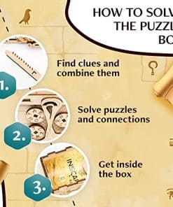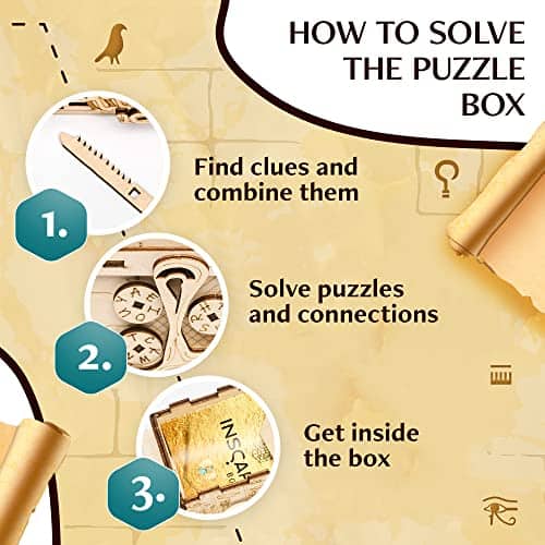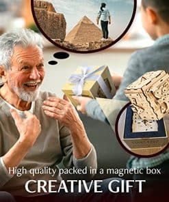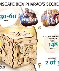 Caja de Rompecabezas con Escape Room: ¡Prepárate para ser desafiado por nuestras cajas de rompecabezas para adultos! Descubre si lograrás abrir el sarcófago y revelar el tesoro del Faraón con el nuevo juego creativo de INSCAPE que llevará tus límites al extremo. Hecho en 30-60 minutos: Nuestra escape room en una caja es una excelente manera de divertirse solo o con la familia y amigos. Cada uno de nuestros rompecabezas 3D de acertijos cerebrales cuenta con 148 partes individuales que han sido ensambladas cuidadosamente a mano. El Regalo Definitivo: Estas cajas de rompecabezas con compartimentos ocultos son un excelente regalo para los amantes de los rompecabezas. Ya sea su cumpleaños, aniversario, Día de San Valentín, Pascua o Navidad, asegúrate de sorprenderlos con un regalo único que nunca olvidarán. Hazlo una y otra vez: ¡Después de haber resuelto la caja de rompecabezas de madera, puedes volver a armar fácilmente el rompecabezas y jugar de nuevo! Además, puedes usar estas cajas secretas para esconder pequeños regalos o dinero para tus seres queridos. La caja también es adecuada para principiantes en rompecabezas y tiene un nivel de dificultad de 2 sobre 5. Sorpresa: Hemos diseñado nuestros rompecabezas mentales para adultos como un viaje que te mantendrá alerta. Cada caja de INSCAPE esconde una sorpresa. Tan pronto como hayas resuelto 8 rompecabezas INSCAPE diferentes, puedes convertir las monedas en un nuevo y emocionante rompecabezas.