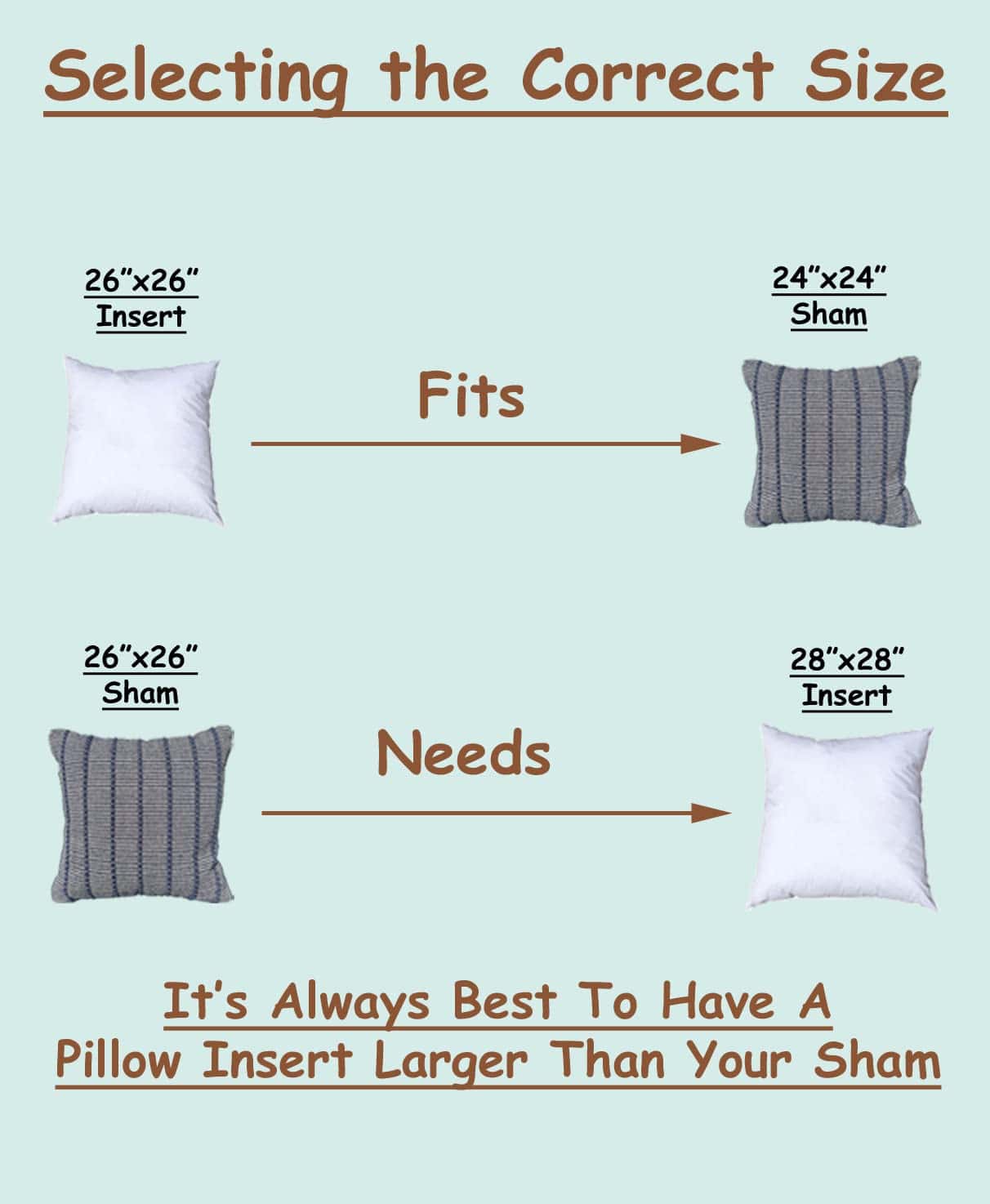 1. TAMAÑO PERFECTO – Mide de esquina a esquina de tus fundas, estirando a lo largo de los bordes exteriores. Todas las fundas deben ser medidas, independientemente del tamaño indicado. Los insertos deben ser más grandes que las fundas para una apariencia completa. Este inserto de almohada de 26×26 pulgadas se recomienda para uso en una funda de 24×24 pulgadas.