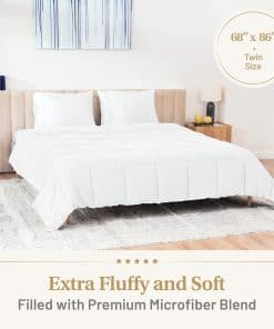 Este inserto de duvet gemelo de lujo de Lavish Comforts es la elección perfecta para aquellos que buscan una comodidad excepcional y una sensación esponjosa en su cama. Hecho con la tela de microfibra más suave, este edredón es ligero, transpirable y perfecto para su uso en todas las estaciones. El relleno vegano y libre de plumas reduce las alergias y es una opción ideal para aquellos que sufren de sensibilidades a los alérgenos del plumón. El edredón es lavable a máquina, lo que lo hace fácil de cuidar y mantener limpio. Simplemente permita que el edredón se expanda suavemente durante 24 horas después de sacarlo del empaque comprimido y estará listo para proporcionarle una comodidad esponjosa como dormir en una nube. ¡Haz de este edredón gemelo esponjoso tu nueva adición favorita a tu colección de ropa de cama de lujo!