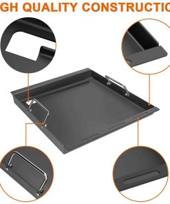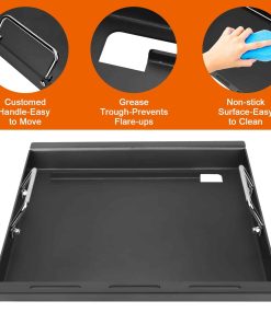 Nuestra plancha de cocina está hecha de acero al carbono antiadherente resistente. Dimensiones de la Plancha de Cocina: 18.125 x 15.75″. ¡Comparar con el TAMAÑO y MODELO de las piezas originales antes de comprar! Disfruta de lo mejor de ambos mundos transformando tu parrilla Charbroil en una plancha en cuestión de segundos. Simplemente retira las parrillas de cocción y reemplázalas con el inserto de plancha para crear alimentos nunca antes pensados en una parrilla, como panqueques, huevos, fajitas y más. Calienta tus alimentos de manera uniforme para un excelente sabor. Permite que tú y tu familia disfruten más de la barbacoa. Los mangos son útiles para mover la plancha. La gran superficie la hace ideal para cocinar varios alimentos a la vez. Ya sea que estés cocinando para una reunión familiar o una fiesta con amigos, esta plancha tiene todo cubierto. Si hay algún problema, no dudes en contactarnos a través de Preguntas y Respuestas de Clientes o por Correo Electrónico.
