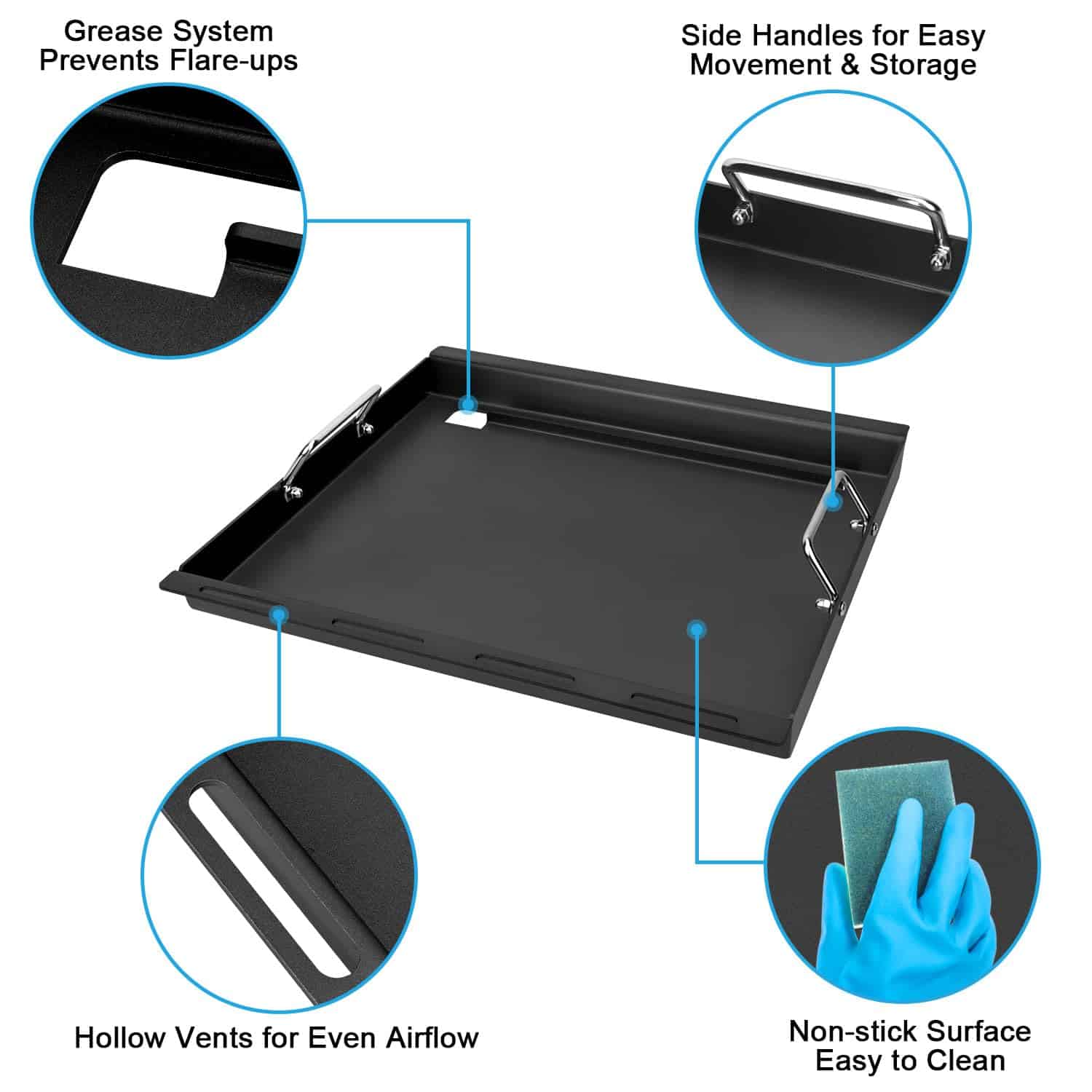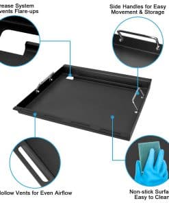 Perfecto para parrillas de 4 quemadores Charbroil Performance: Compatible con parrilla Charbroil 463342119, 463332718, 463335517, 463342118, 463347017, 463347418, 463376217, 463377017, 463335519, 463349917, 463361017, 463376017, 463376117, 463377117, 463377217, 466342119, 466347019, 463332719, 466335517, 463347017. Empaque Incluye: El paquete incluye 1 placa superior de plancha con recubrimiento, 2 rejillas de parrilla, 1 par de guantes de silicona. Material Plancha hecha de resistente acero al carbono esmaltado, Rejillas de parrilla hechas de resistente hierro fundido esmaltado. Dimensiones Dimensiones de la plancha: 18.125″ x 15.75″. Dimensiones de las rejillas: 18.125″ x 13″. Número de parte original Piezas de repuesto para Charbroil Performance G470-0002-W1, G470-0003-W1, G321-0005-W1, G321-0006-W1. Características del producto: Más resistencia a la corrosión, a prueba de óxido y resistente al calor. Perfecto para asar piezas de carne más grandes, salchichas o pan en la parrilla. También puede cocinar algunos alimentos en la plancha que no se pueden cocinar en la rejilla de la parrilla y experimentar la diversión de ambos accesorios al mismo tiempo. Calienta tu comida de manera uniforme para un gran sabor. Deja marcas de parrilla profesionales y hermosas en la comida. ¡Deja que tú y tu familia disfruten más del BBQ! Servicio postventa: Si hay algún problema, no dude en contactarnos a través de Preguntas y respuestas de clientes o correo electrónico. Le ayudaremos a resolver el problema en 24 horas y le daremos una respuesta satisfactoria.