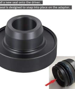 2. Instale un sello nuevo en el conductor como se muestra arriba. El sello está diseñado para encajar en su lugar en el adaptador.