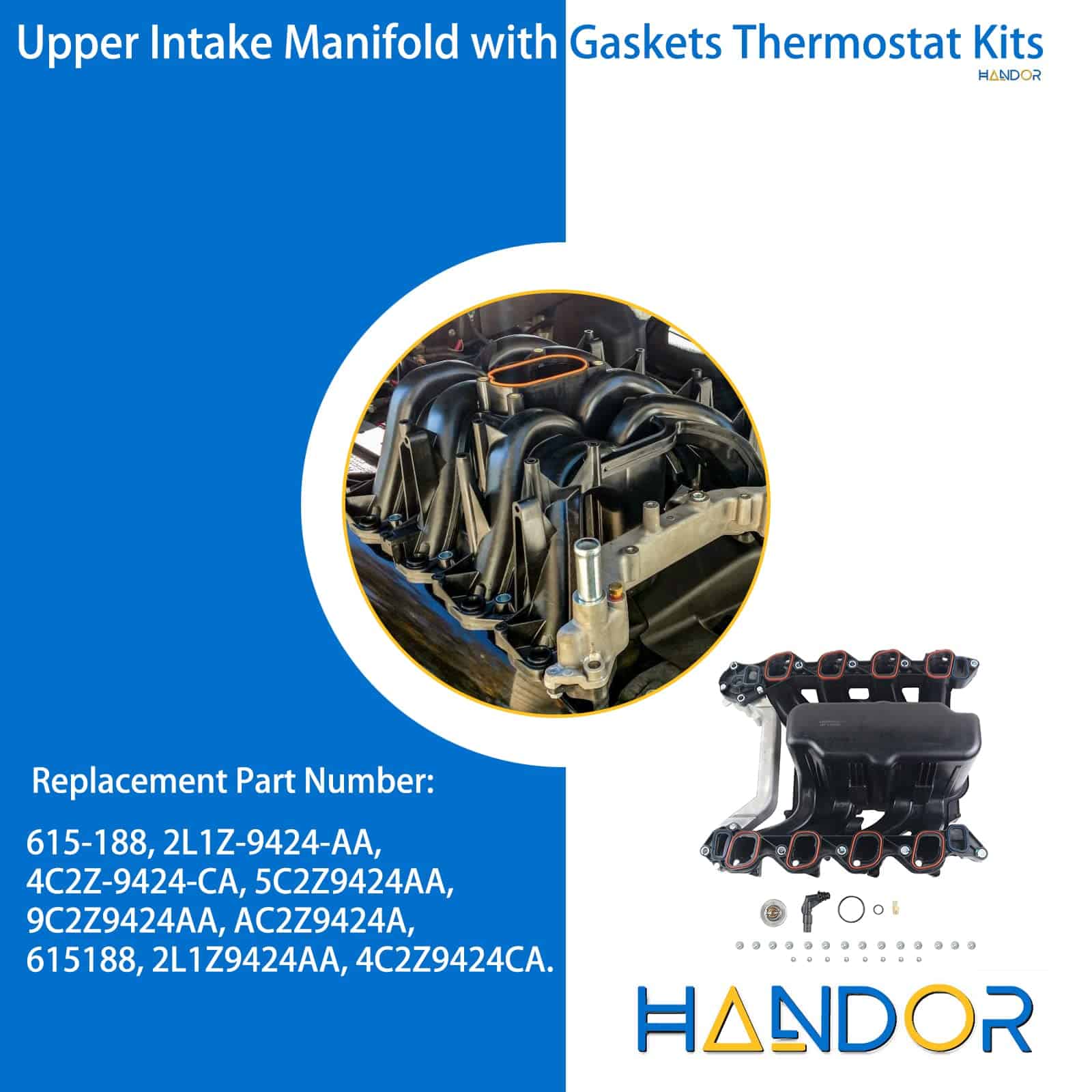 Intake Manifold Superior con Juntas y Kits de Termostato Compatibles con Ford E/S Series, E150, E250, E350, E450, F150, F250, F350, Excursion, Expedition, 5.4L V8, Reemplaza 2L1Z-9424-AA, 615-188