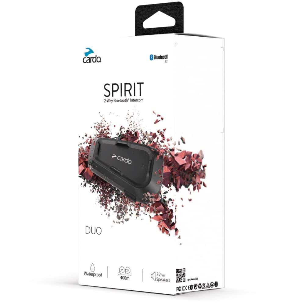 Intercomunicador Bluetooth de 2 vías. Dos motociclistas a una distancia de 400m / 0.25mi. Altavoces delgados de 32 mm y un procesador avanzado para un sonido envolvente. Resistente al agua: No importa lo que le arrojes, tu Spirit resistente al agua soportará el maltrato y te mantendrá conectado. Lluvia, sol, barro, polvo o nieve. Actualizaciones de software por aire: Mantén siempre actualizada tu unidad a través de la aplicación Cardo Connect. Descarga actualizaciones de software por aire cada vez que haya una nueva versión disponible. Conectividad universal: SPIRIT se conecta con cualquier otro auricular Bluetooth de cualquier marca. La conexión es fácil y sin problemas. Volumen automático: Ajusta automáticamente el volumen del sonido según el ruido ambiental exterior. Transmisión de música: Toda la música que siempre quisiste se transmite directamente desde tu smartphone. Controla, comparte y experimenta tu canción favorita en el camino. USB tipo C robusto y universal para conexiones fáciles a cualquier dispositivo. Teléfono y GPS: Haz llamadas y controla tu GPS con un toque de dedo o el sonido de tu voz. Carga rápida: ¿Te estás quedando sin batería? Obtén 2 horas de tiempo de conversación después de 20 minutos de carga. USB tipo C robusto y universal para conexiones fáciles a cualquier dispositivo.