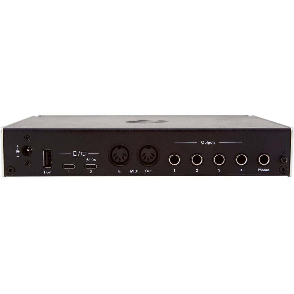 Los cuatro preamplificadores están equipados con entradas combo XLR-1/4″ y alimentación fantasma, por lo que pueden aceptar micrófonos dinámicos o de condensador, instrumentos o fuentes de nivel de línea. Hay cuatro salidas de línea balanceadas y una salida de auriculares estéreo, que pueden tener su propia mezcla. La integración de dispositivos MIDI externos es sencilla y flexible, gracias a la E/S MIDI de 5 pines y al puerto de host USB-MIDI. Los controles táctiles capacitivos no solo simplifican la operación, sino que también ayudan a mantener el AUDIO4c compacto.