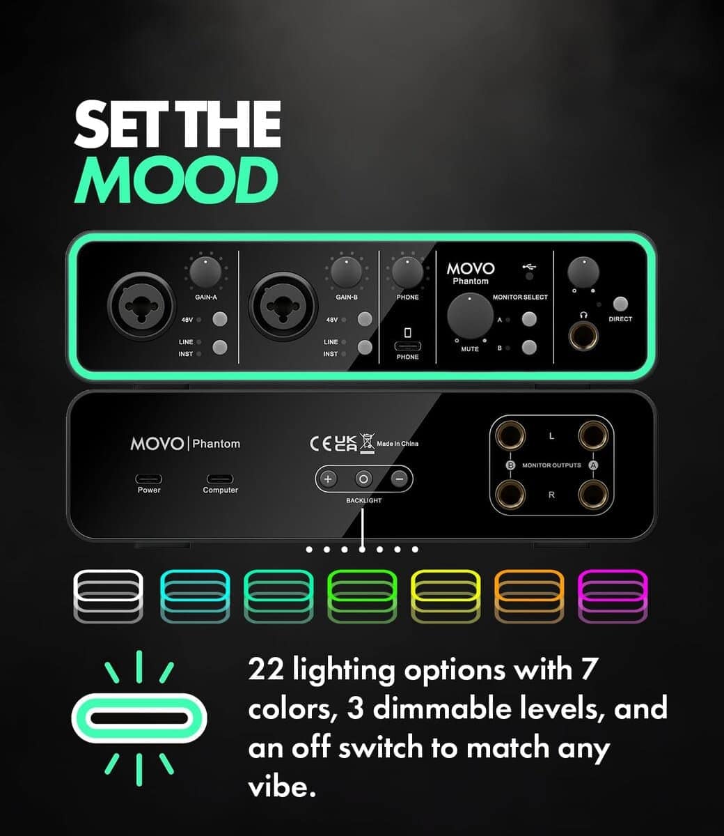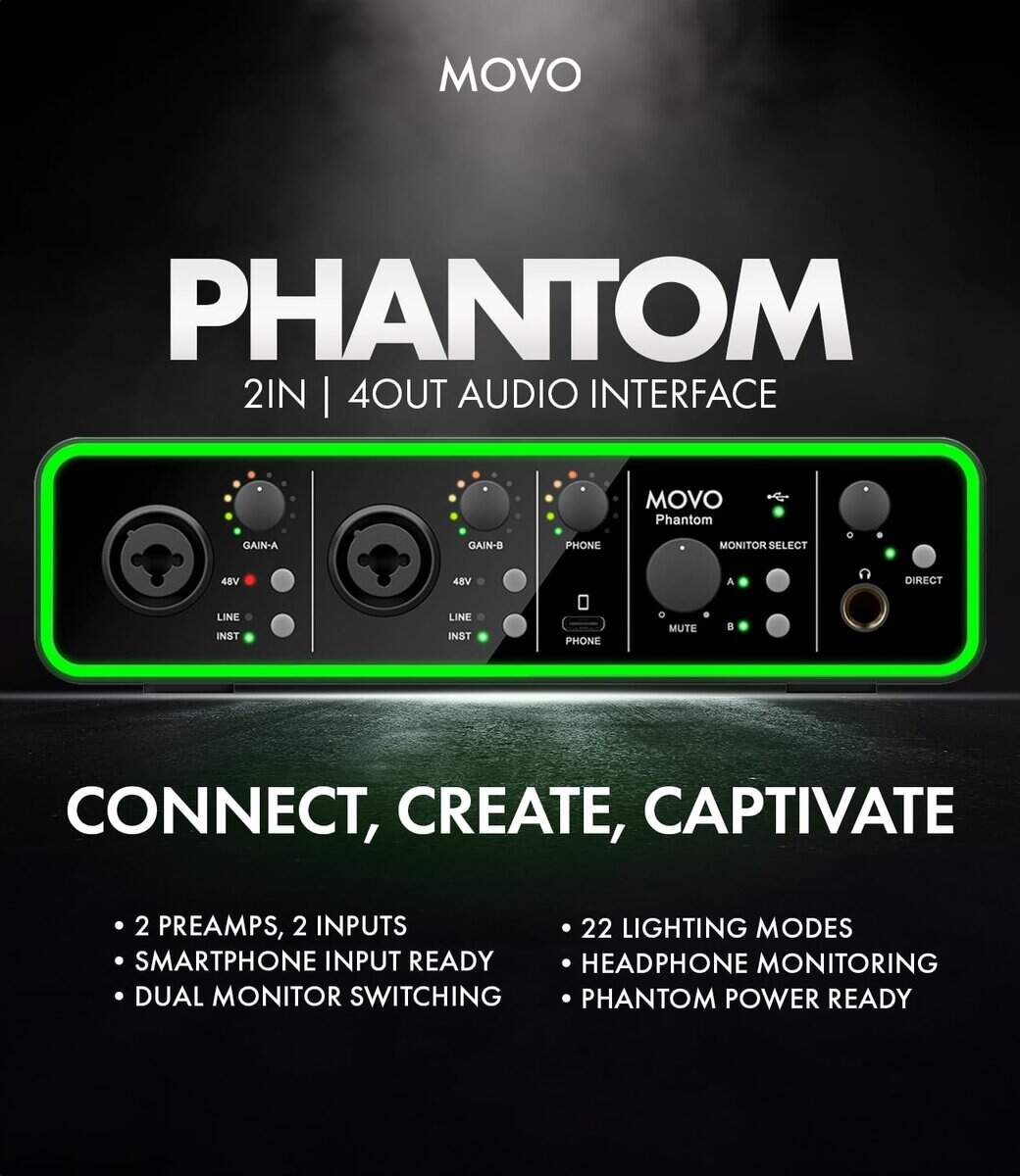 Interfaz de audio USB/USB-C de doble canal Movo Phantom