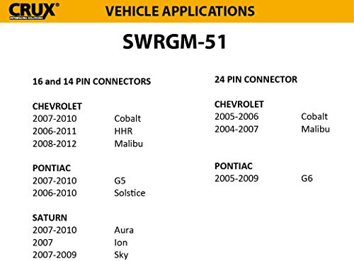 El Crux SWRGM-51 es una interfaz premium para vehículos selectos de General Motors LAN 11-bit. Facilita la integración de una radio post-venta para retener completamente las características de fábrica en vehículos GM LAN 11-bit con sistemas amplificados y no amplificados de Bose. Esta interfaz mejorada también está pre-programada para retener los controles del volante.