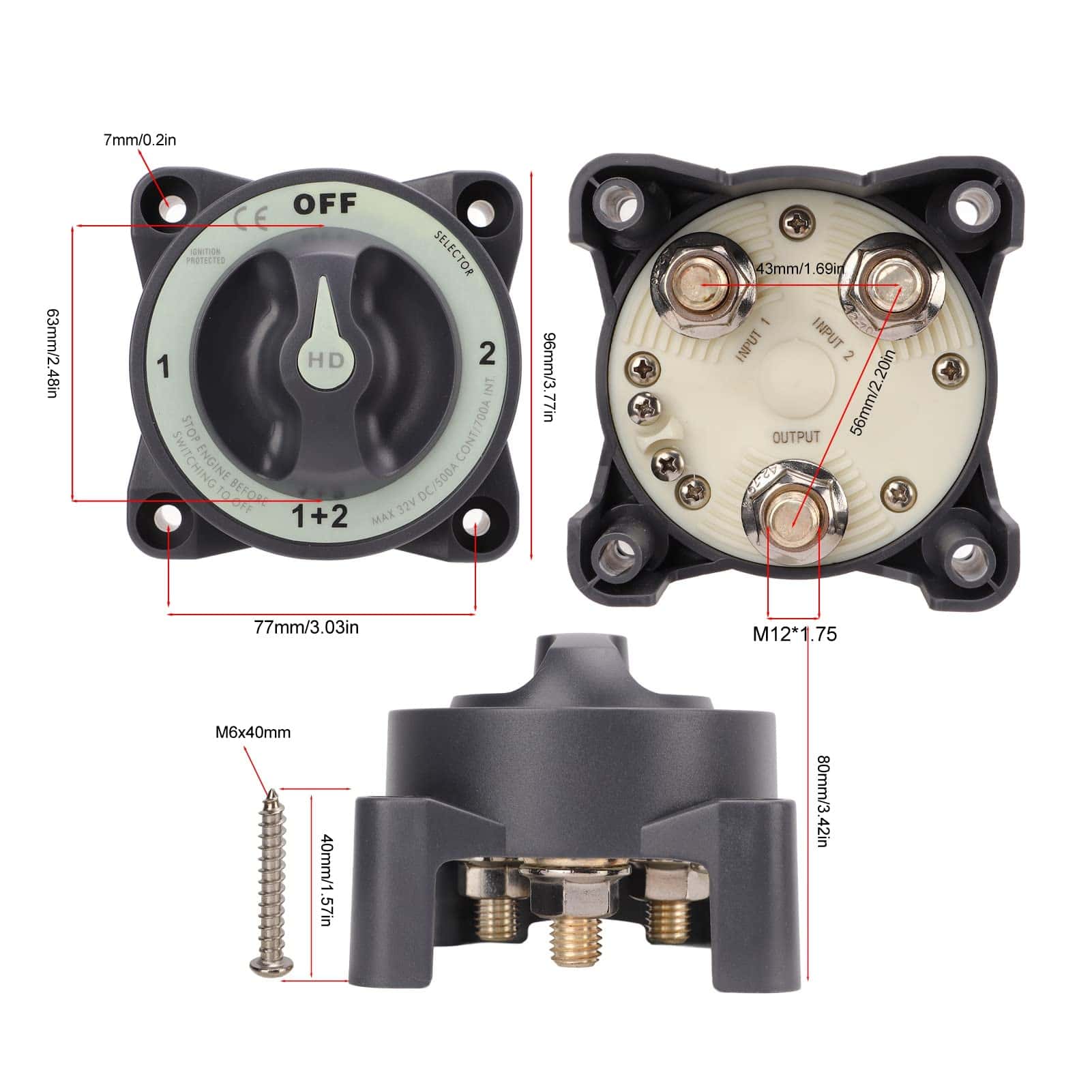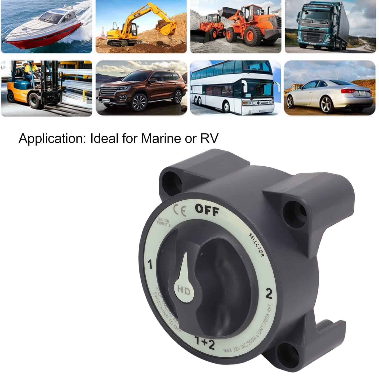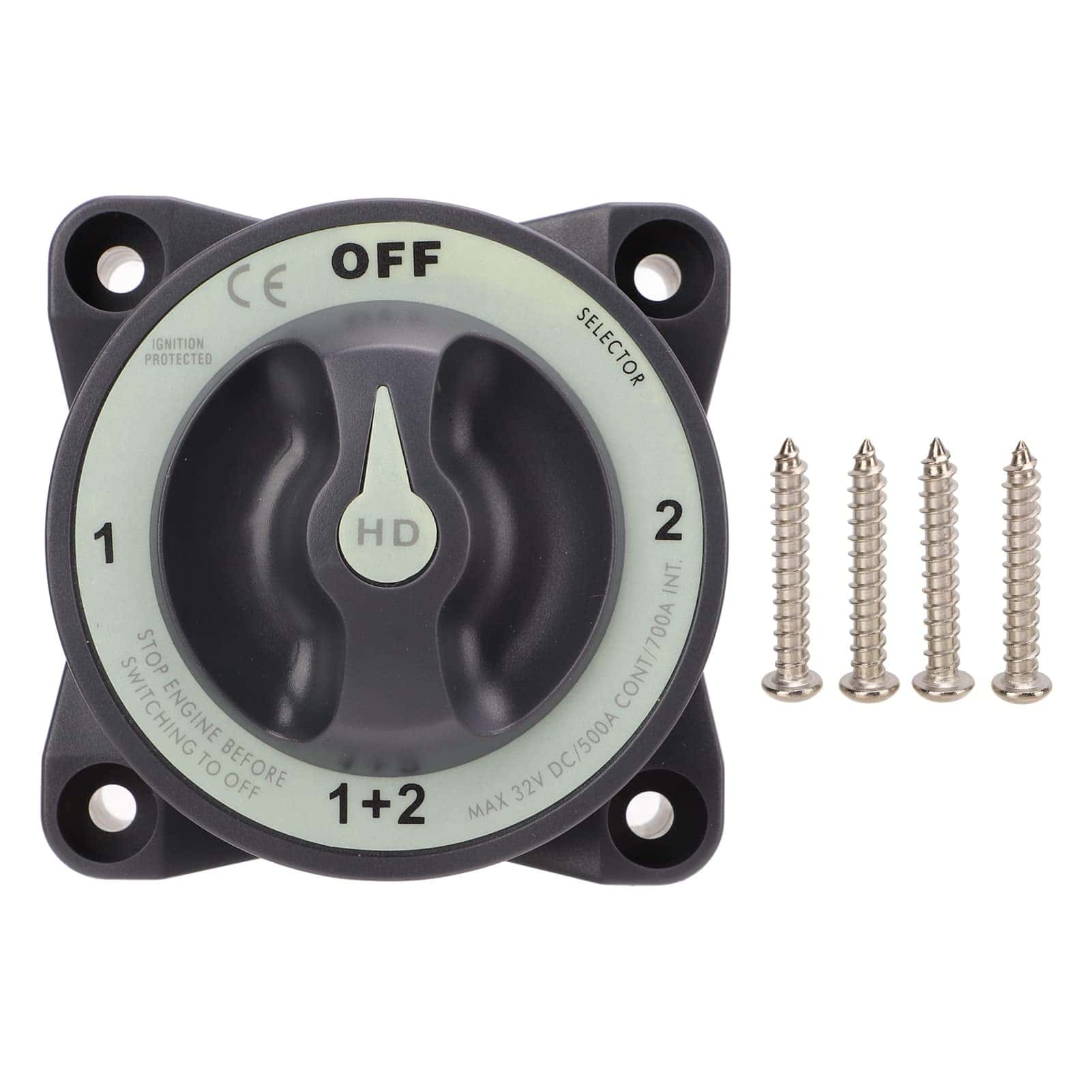 Este interruptor de batería selector de 500A es perfecto para uso marino en barcos y remolques. Cuenta con 4 posiciones para una fácil desconexión de la batería y tiene una protección de encendido para mayor seguridad. Es resistente al agua y se puede usar en condiciones marinas adversas. ¡Mantén tu batería segura y protegida con este interruptor de alta calidad!