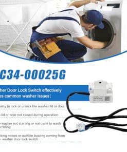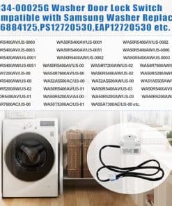 Interruptor de Bloqueo de Puerta DC34-00025G Compatible con Samsung WA50R5200AW/US-00, WA50R5200AW/US-02, WA50R5200AW/US-51, WA50R5400AV/US-02, WA52A5500AV/US-00, WA52A5500AC/US-00, WA54R7200AW/US-02, WA55A7300AE/US-00, WA54R7600AW/US-00, WA54R7600AV/US-00 series Lavadoras Reemplaza AP6884125 PS12720530 EAP12720530.