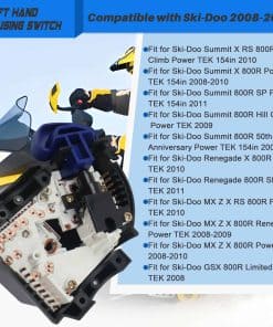 Este interruptor de carcasa para mano izquierda se adapta a varios modelos de Ski-Doo, incluidos Summit, Renegade, MX Z y GSX, entre otros, fabricados entre 2008 y 2011. Con este interruptor de mano izquierda, los conductores podrán controlar fácilmente el cambio entre luces altas y bajas, así como ajustar la temperatura de los calentadores de mano y pulgar para una experiencia de manejo más cómoda en días fríos. Fabricado con plástico ABS de alta calidad, esta carcasa para interruptor de mano garantiza durabilidad y resistencia al agua para un rendimiento confiable en condiciones extremas. La instalación es sencilla y directa, sin necesidad de cortar o empalmar cables, lo que garantiza una actualización sin problemas. Disfruta de una conducción más segura y cómoda con este interruptor de carcasa para mano izquierda de calidad premium.
