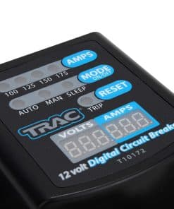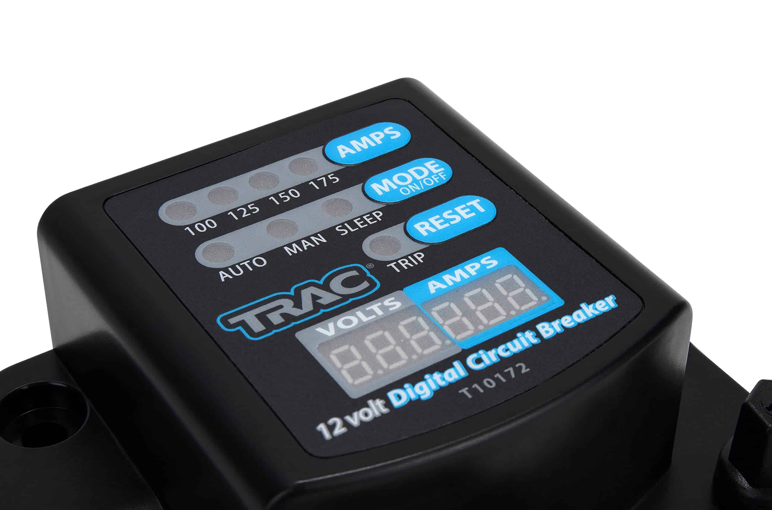 El innovador diseño de estado sólido elimina la inexactitud de los interruptores térmicos. También permite un mayor control sobre sus circuitos con límite de corriente (amperaje) seleccionable y más flexibilidad con los modos de reinicio Manual o Automático seleccionables. El microprocesador TRAC monitorea el voltaje y la corriente en tiempo real para proteger automáticamente su circuito de 12 voltios de daños causados por sobrecarga o cortocircuito. Si el Interruptor de Circuito Digital TRAC detecta una condición de falla, el flujo de corriente se interrumpirá en un amperaje muy preciso y seleccionable por el usuario.