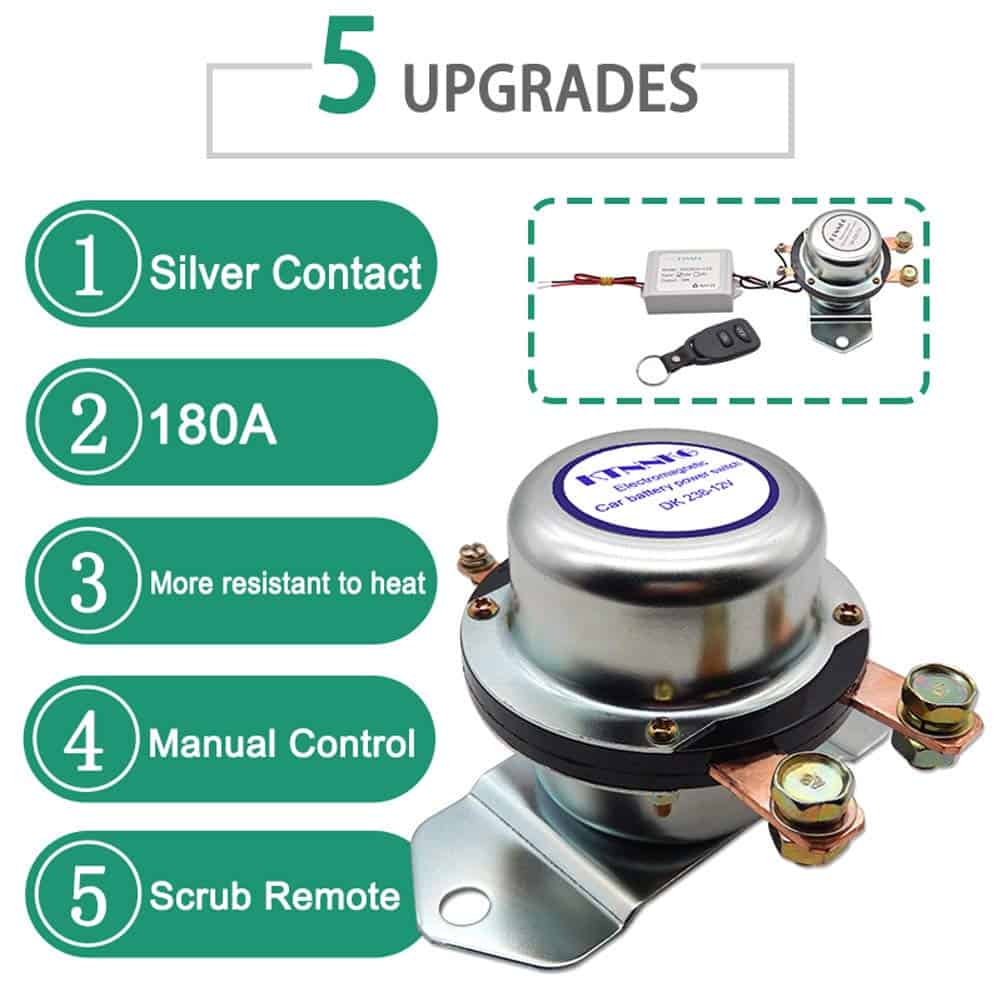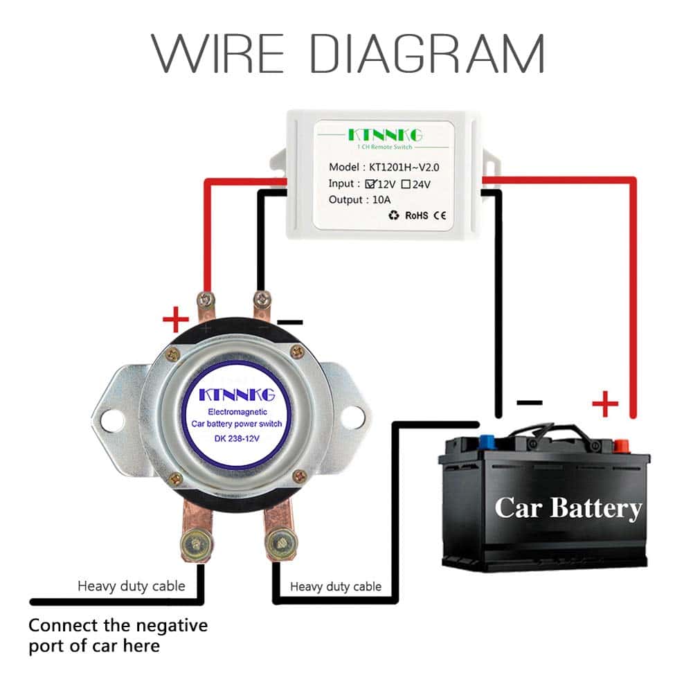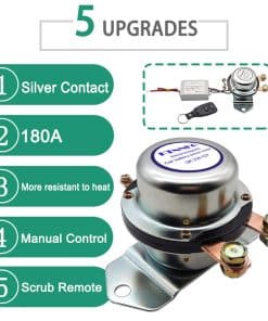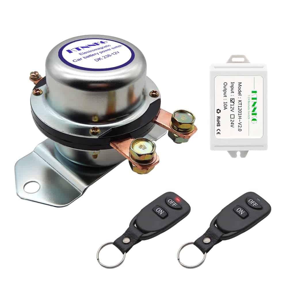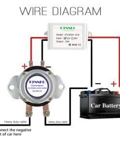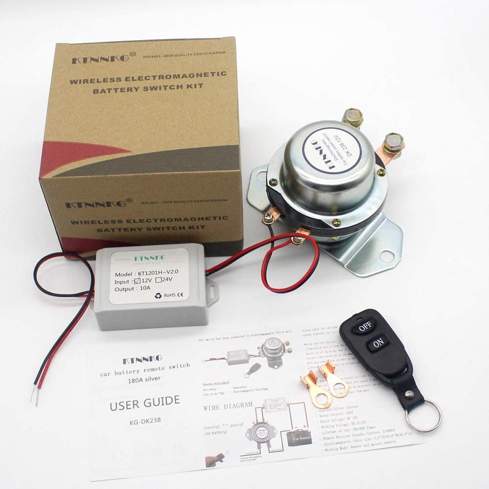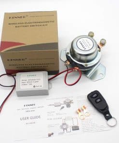 POR FAVOR, REVISE EL ESPACIO DEL CAPÓ DEL AUTOMÓVIL Y EL VOLTAJE DE LA BATERÍA DEL AUTOMÓVIL ANTES DE COMPRAR: 12V para automóvil, 24V para camión. ¿Por qué necesitamos este dispositivo? 1. A veces tenemos que detener el motor por mucho tiempo (15 días o más), la batería del automóvil se agota día a día. ¿Qué pasa si se queda sin batería un día ¡No puedes arrancar el automóvil! Este dispositivo puede cortar la energía, solo necesita encender la batería con su control remoto cuando quiera usar el automóvil un día. 2. El ladrón no puede arrancar su automóvil. Aviso: 1. Este dispositivo es solo para encender / apagar la batería, no puede arrancar su motor. 2. No corte la energía cuando su motor está funcionando. 3. El control remoto se ha emparejado bien con el interruptor antes del envío, puede usarlo directamente cuando lo reciba. No es necesario emparejarlos nuevamente. 4. Si desea restablecer el control remoto o emparejar más controles remotos, por favor contáctenos para obtener más información. Le enviaremos el video. Paquete incluido: 1 x Interruptor de batería de automóvil electromagnético con cableado. 1 x Control remoto. 1 x Receptor de control remoto con cableado. 1 x Paquete de venta al por menor. 1 x Manual del usuario. Parámetros: Corriente máxima: 1000A. Corriente nominal: 180A. Voltaje nominal: DC 12V. Voltaje de trabajo: DC 5-15V. Vida útil: 100,000 veces. Corriente en espera del receptor remoto: 0.0085A. Tamaño del interruptor principal: Altura: 3.2″, Ancho: 3.8″, Longitud: 5.8″