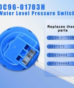 DC96-01703H Interruptor de Nivel de Agua para Lavadora. Este interruptor de nivel de agua actualizado es compatible con los modelos de lavadoras Samsung WA48, WA50, WA52, WA56 y más. Fabricado con material de calidad, este interruptor de presión de nivel de agua de repuesto garantiza durabilidad y fiabilidad. Repare los síntomas de lavadora como no llenar con agua, no dejar de llenarse con agua o fugas de agua con este sensor de presión. Fácil de instalar, asegúrese de desconectar la energía y la fuente de agua antes de la instalación. Compatible con una amplia gama de modelos de lavadoras Samsung, este interruptor de nivel de agua es la solución perfecta para mantener su lavadora funcionando correctamente.