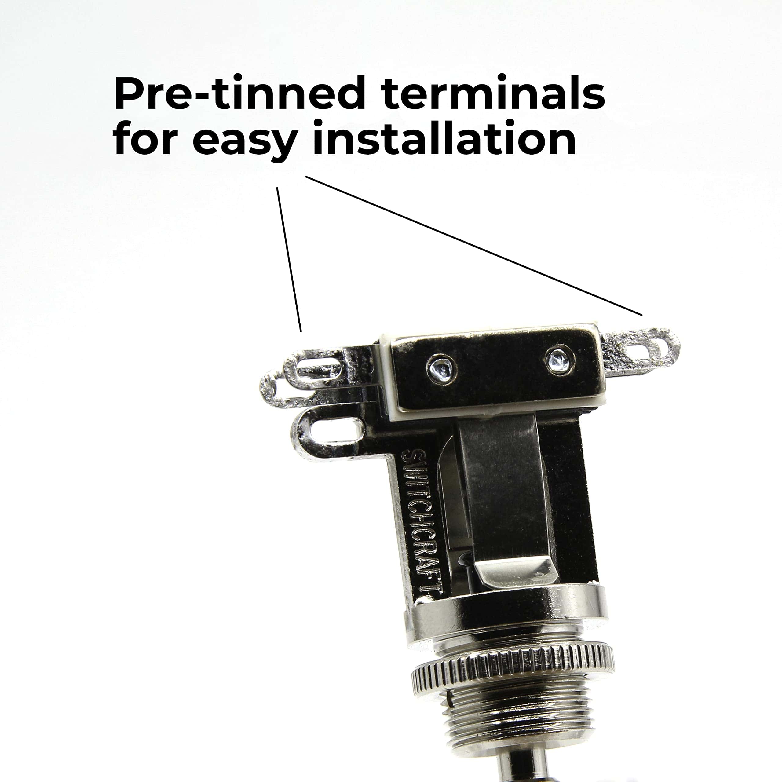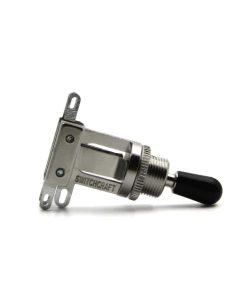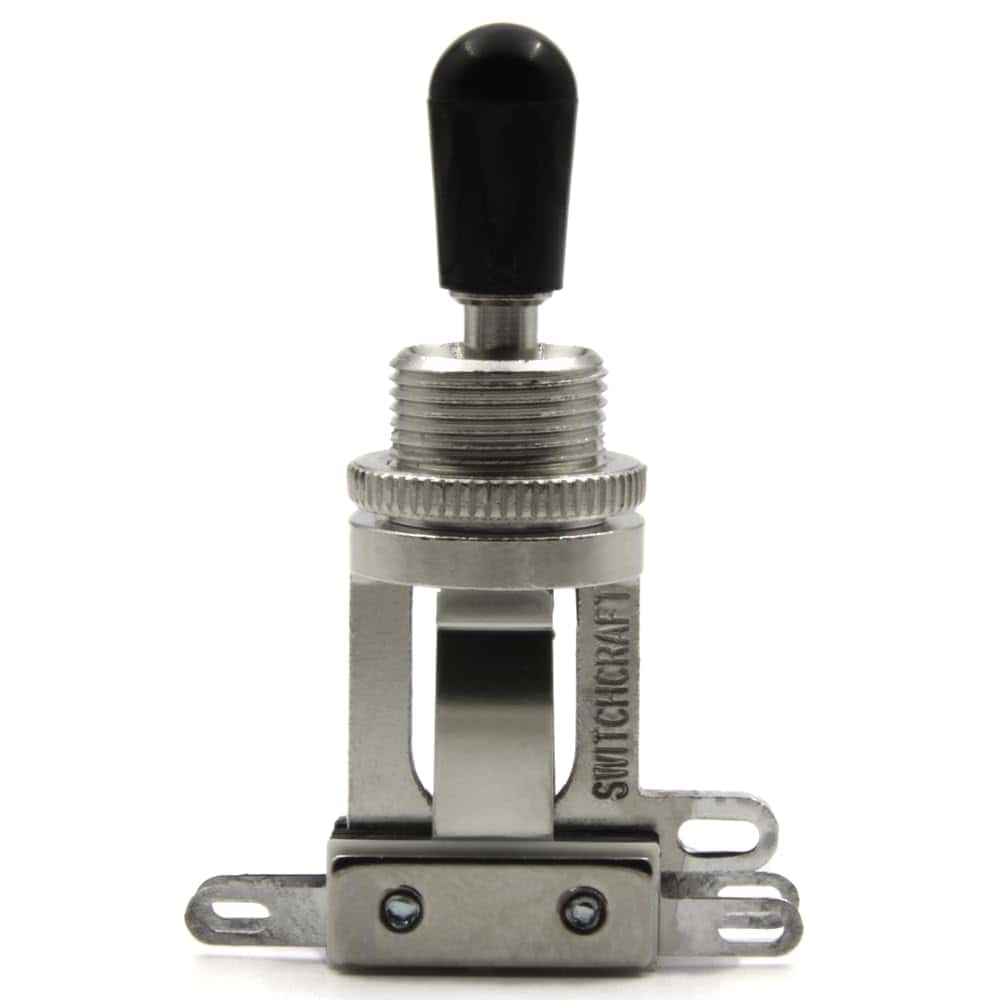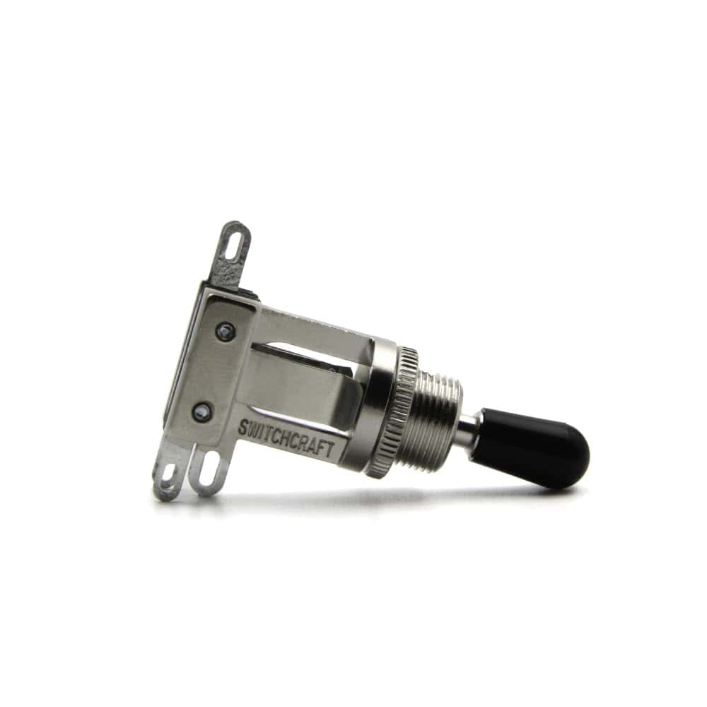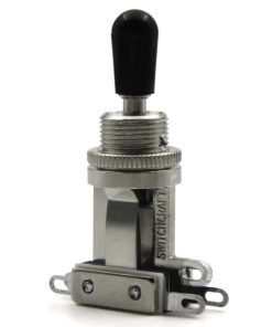 Interruptor de palanca de 3 vías de marco corto de alta calidad, producido en EE. UU. por Switchcraft. Las palancas de marco corto son generalmente adecuadas para su uso en guitarras de cuerpo de laja o cuerpo estrecho donde la palanca de marco largo es demasiado larga. Por ejemplo: SG’s, serie ES, LP juniors, Epiphone LP’s. Se incluye punta genuina de Switchcraft. Pestañas pretinadas para una soldadura fácil. Viene con una tuerca. Dimensiones para guitarra de 2 pastillas Altura de rosca 11/32″ (8.74mm). Requiere un diámetro de agujero de montaje de 1/2″ (12.70mm). Profundidad requerida de la cavidad del cuerpo 7/8″ (22.23mm).