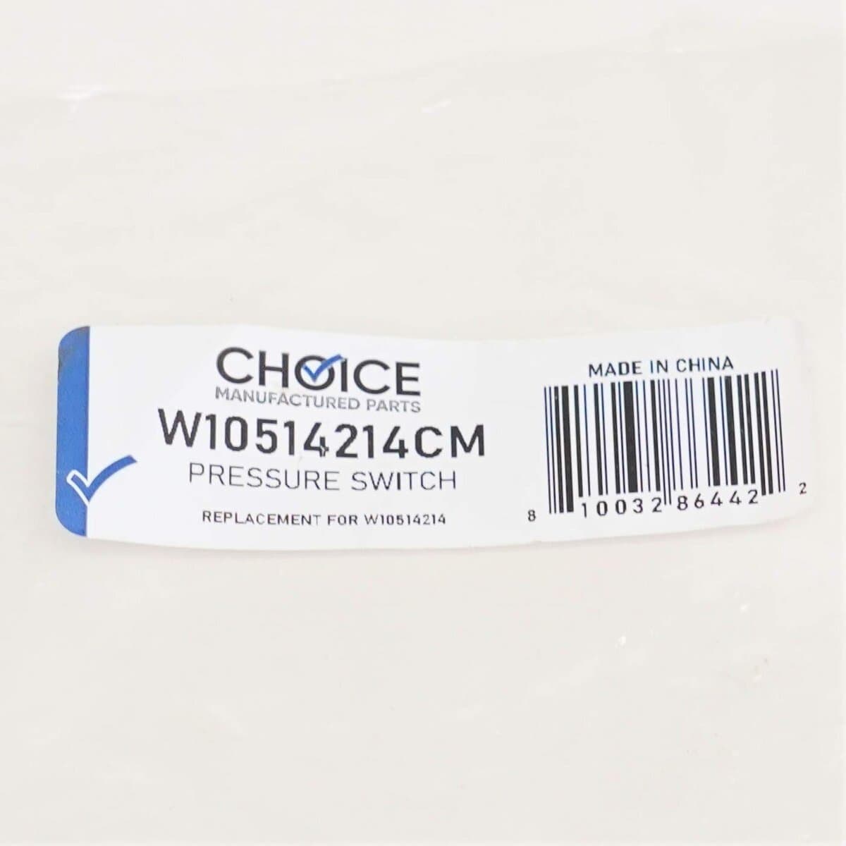 Choice Manufactured Parts, número W10514214CM. El interruptor de presión de nivel de agua detecta y controla el nivel de agua en la lavadora. 120V, seis conectores de pala. Reemplazo para los números WPW10514214, AP6022522, W10514214, 8181695, PS11755855. Diseñado para adaptarse a modelos específicos de lavadoras fabricadas por Whirlpool, incluyendo Amana, Estate, KitchenAid, Maytag y Roper.