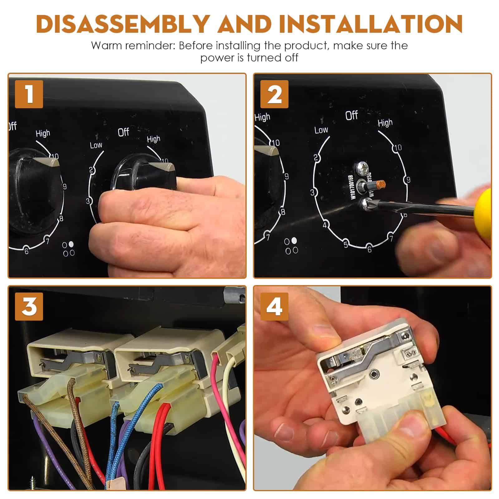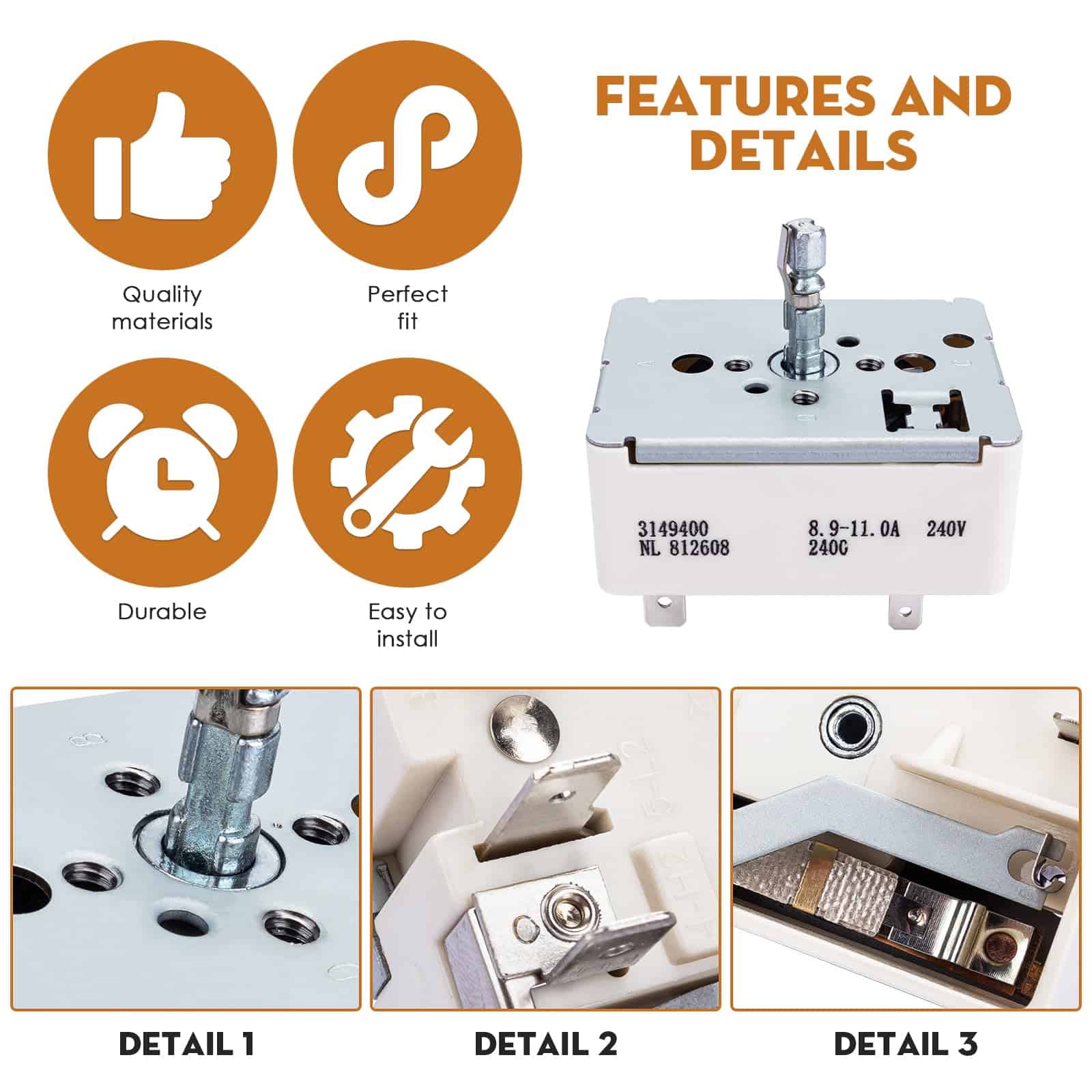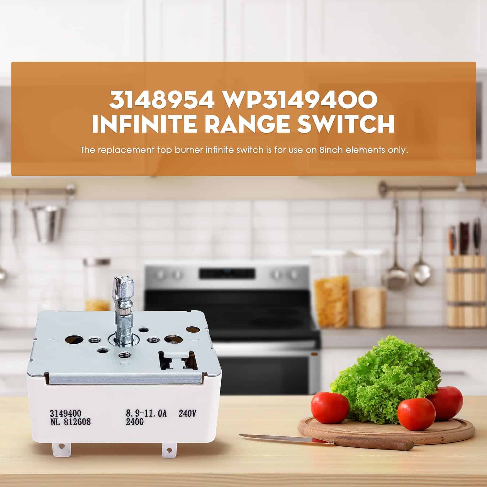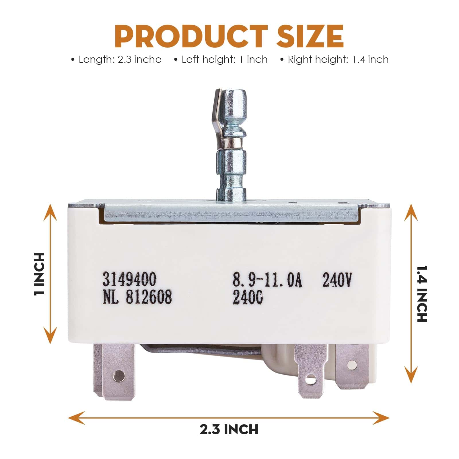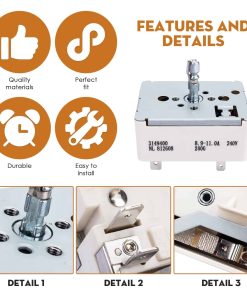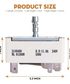 El interruptor de rango de repuesto superior es para uso en elementos de 8 pulgadas solamente. Compatible con los siguientes números de parte: 3148953, ES9400, WP3149400, 3149400, AP3095444, 2786, 310180, 311846, 311858, 311859, 314140, 3148954, AH336989, EA336989, PS336989, etc. Resuelve el problema cuando el interruptor de rango falla, estás cocinando a fuego lento y la hornilla va a calor máximo aleatoriamente por sí sola. Fácil de reemplazar esta pieza y volver a la función normal. Hecho de materiales de alta calidad, medida estrictamente por el proveedor para un ajuste perfecto, resistente, preciso y robusto. Fácil de instalar, retire los conectores de los controles antiguos e instálelos en las nuevas partes antes de desatornillar las partes antiguas. Las instrucciones de instalación se pueden ver buscando videos relacionados en YouTube. Si tiene alguna pregunta o inquietud, no dude en contactarnos, estaremos encantados de ayudarle.