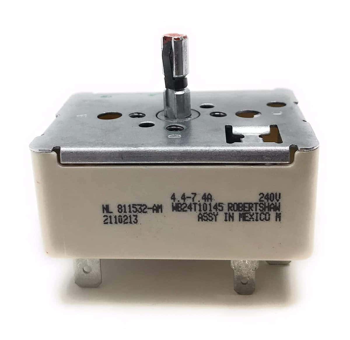 Interruptor de estufa OEM WB24T10145, 811532, 191D5452P001, para encender/apagar el elemento de cocción (el elemento más grande), 4.4~7.4 AMP, 240 Volt. Similaridad garantizada: este es el mismo interruptor OEM con el mismo ajuste, forma y función. Compatible con 700+ modelos de GE. Modelos compatibles: ECBP82, EER2000, EER2001, EER4000, EER4001, JB3000, JB3001, JB400, JB620, JB640, JB645, JB650, JB660, JB670, JB680, JB690, JB700, JB705, JB710, JB720, JB730, JB740, JB770, JB840, JB850, JB855, JB870, JBP62, JBP64, JBP65, JBP66, JBP67, JBP68, JBP70, JBP71, JBP72, JBP74, JBP77, JBP80, JBP81, JBP84, JBP89, JBS55, JCB710, JCB850, JCBP62, JCBP65, JCBP66, JCBP67, JCBP68, JCBP70, JCBP71, JCBP77, JCBP78, JCBP79, JCBP80, JCBP81, JCBP83, JCBP84, JCBP85, PB900, PB905, PB909, PB910, PB915, PB969, PB970, PB975, PCB800, PCB900, PCB909, PCB969, PCB975.