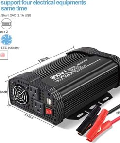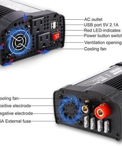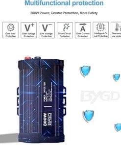 Un buen inversor de corriente ofrece una gran conveniencia y no necesariamente tiene que costar mucho. Pero, ¿significa eso que simplemente puedes optar por el inversor de corriente más barato disponible, o deberías invertir un poco más por funcionalidad adicional y mayor salida? BYGD fue creado para ayudarte a resolver las difíciles preguntas de los compradores. Si estás listo para comprar, te recomendamos elegir los inversores de corriente adecuados para ti. Hemos pasado por nuestros rigurosos procedimientos de evaluación y ofrecemos una gran variedad de opciones asequibles. NOTA Evita operar el inversor mientras tu mano está mojada. Evita introducir el AC al inversor de corriente. Evita usar productos que excedan el valor pico del producto. Evita usar el enchufe del encendedor de cigarrillos al usar el inversor en dispositivos de más de 800W. Evita dejar el inversor de corriente en estados de ENCENDIDO mientras tu auto está APAGADO. Evita la exposición prolongada al sol, lo que resultará en una temperatura excesiva del producto o quemaduras. Especificaciones: Apto para Batería de 12V Salida: 110V Potencia: 800W Potencia de Pico: 1600W Forma de Onda de Salida: onda senoidal modificada Puertos de Carga USB: 2.4Amp (compartidos) Frecuencia: 50/60Hz Peso del Inversor: 8.52 lbs Dimensiones: (L x W x H): 8.4×6.5×3 PULGADAS Incluido en el Paquete: 1 x Inversor de Potencia de 800W Pinzas de Batería Cables 1 x Manual del Usuario