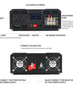 2. Pantalla Digital LCD – El inversor de corriente con pantalla digital LCD puede mostrar más datos de funcionamiento que la pantalla LED. La pantalla digital LCD muestra el estado de funcionamiento del inversor, como voltaje, potencia y corriente, un protector para los electrodomésticos conectados.