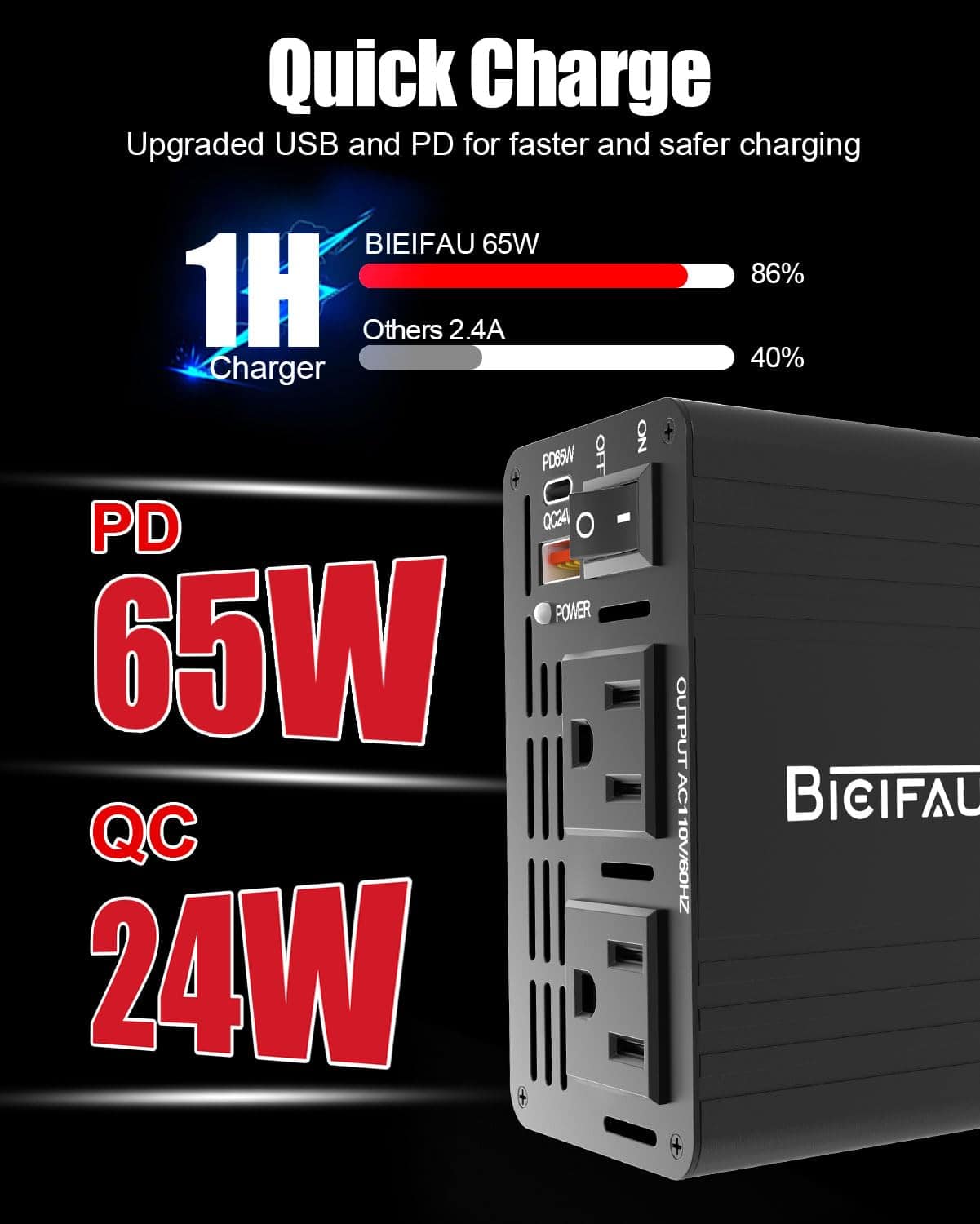 3. Diseñado para brindar fiabilidad, el inversor de corriente de 600W BieiFAU con puertos USB-C cuenta con una carcasa duradera de aleación de aluminio y un ventilador inteligente controlado por temperatura para evitar el sobrecalentamiento durante un uso prolongado. El ventilador ultra silencioso se activa solo cuando es necesario, mientras que el diseño optimizado de disipación de calor garantiza un rendimiento óptimo durante horas. ¡Confía en este inversor de corriente para coche de 12v a 120v para manejar viajes por carretera, camping o emergencias sin problemas!.