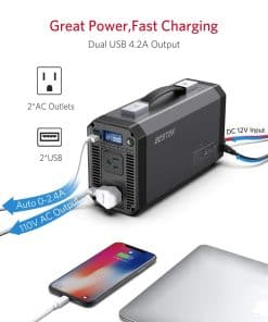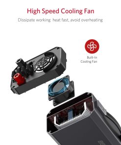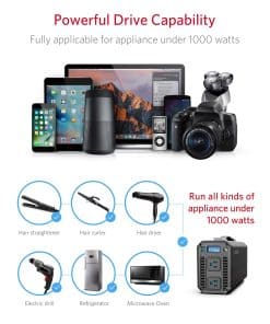 Inversor de corriente de onda sinusoidal pura BESTEK 1000W. Marca líder en inversores de energía en Estados Unidos. Proporciona 1000W de potencia continua de DC a AC, con características que incluyen 2 salidas AC y 2 puertos de carga USB inteligentes, pantalla digital LCD. La onda sinusoidal pura es superior a la onda sinusoidal modificada, con mayor capacidad de accionamiento, una mejor protección para equipos sensibles, menos ruido auditivo y eléctrico, y un menor consumo de energía. Ideal para dispositivos médicos (CPAP, sillas de ruedas eléctricas, nebulizadores) en caso de cortes de energía, así como para alimentar otros pequeños electrodomésticos/dispositivos como cafeteras, proyectores, TV, altavoces, aires acondicionados, microondas, mini-neveras. La pantalla LCD digital muestra el voltaje de entrada/salida, la potencia de salida e indica las protecciones activadas. El ventilador de refrigeración silencioso gira automáticamente a diferentes velocidades según la carga de energía y la temperatura, lo que ayuda a reducir el ruido del ventilador. También, el ventilador de alta velocidad protege el inversor contra el sobrecalentamiento. Incorpora protecciones múltiples, como 4 fusibles de 50 amperios para proteger la batería y los dispositivos, y tecnología de carga segura que brinda protección contra sobrecalentamiento, carga sobre/subsobre voltaje, sobrecarga y cortocircuitos. Con garantía de 18 meses y servicio al cliente amigable.