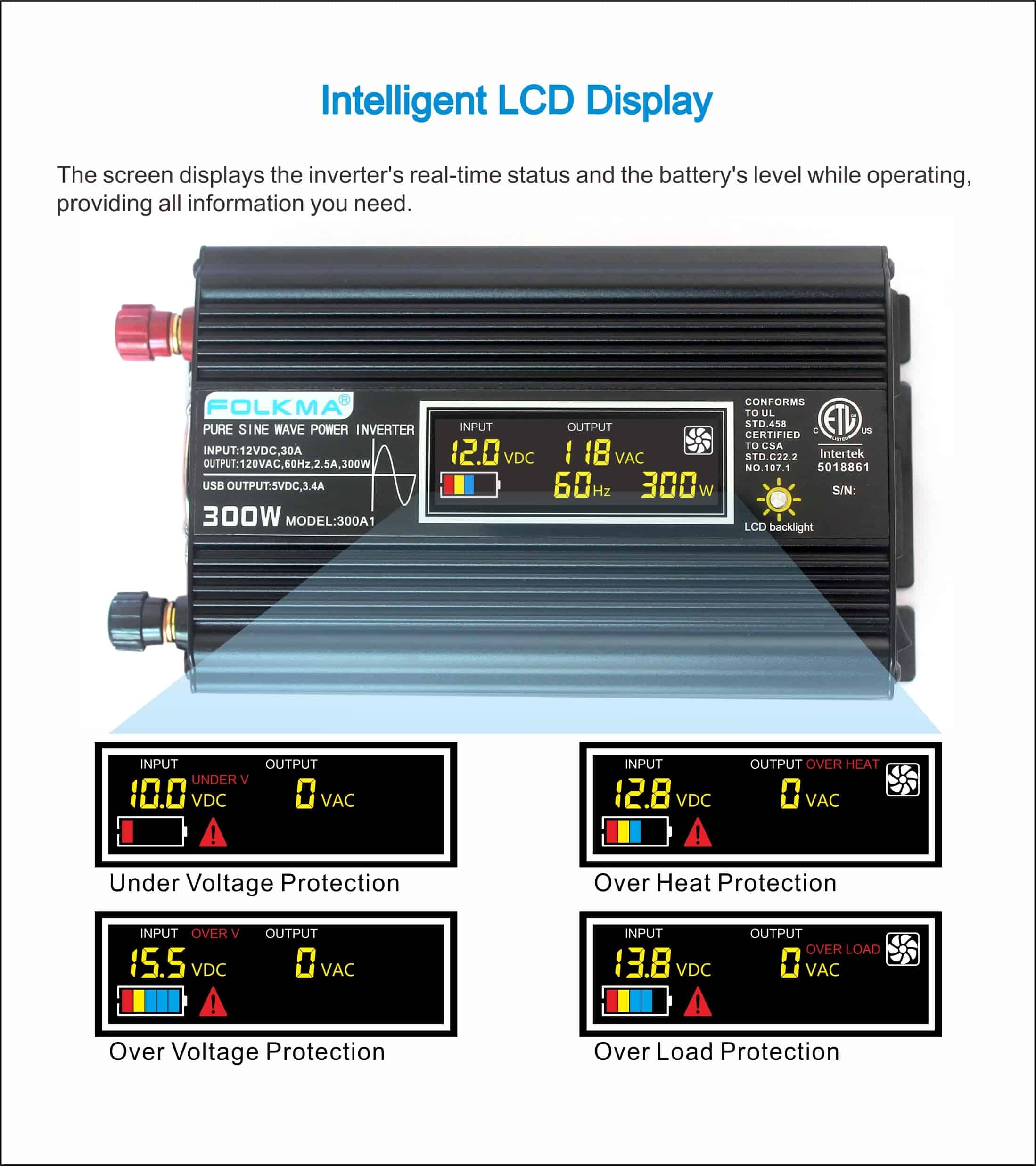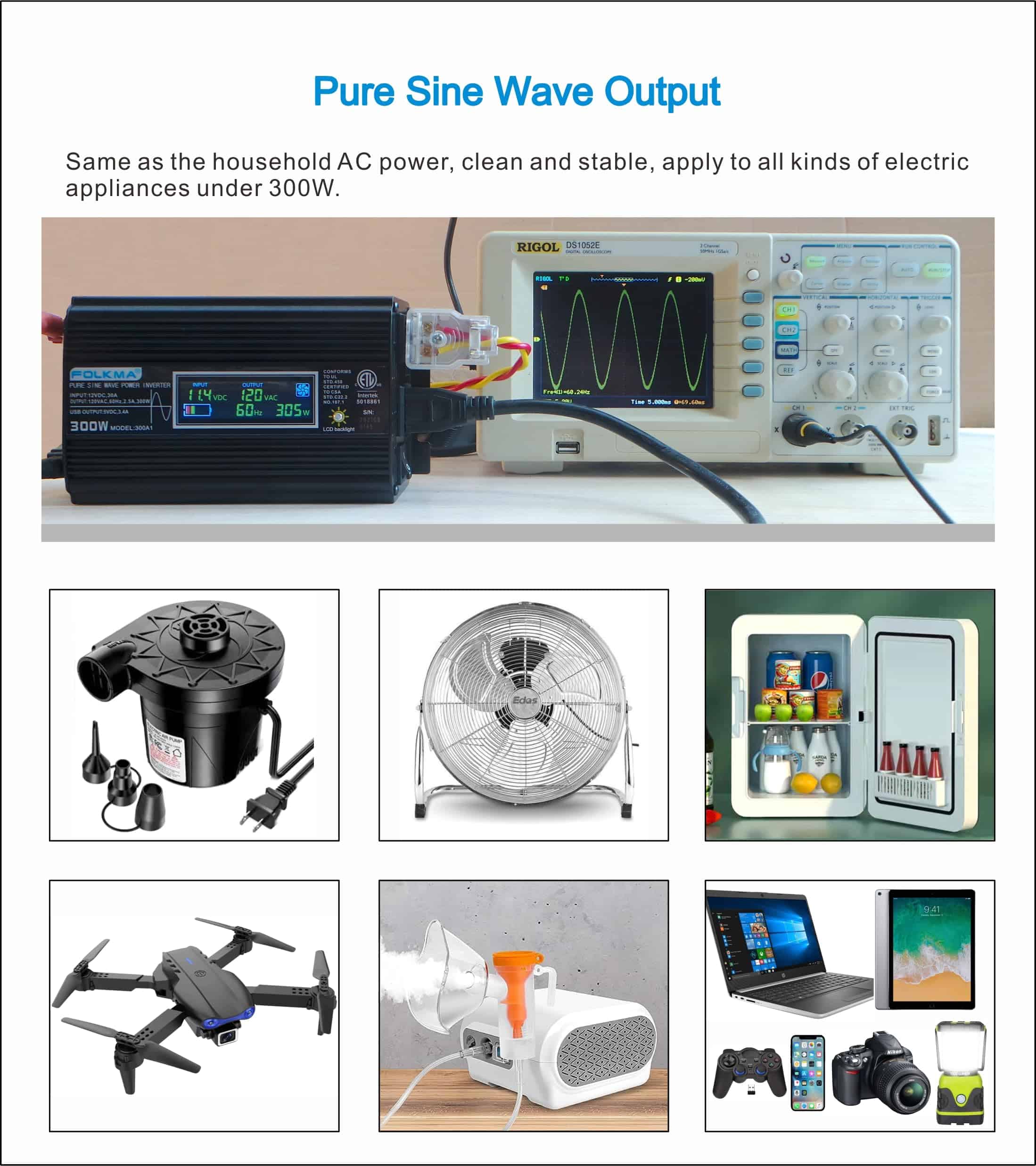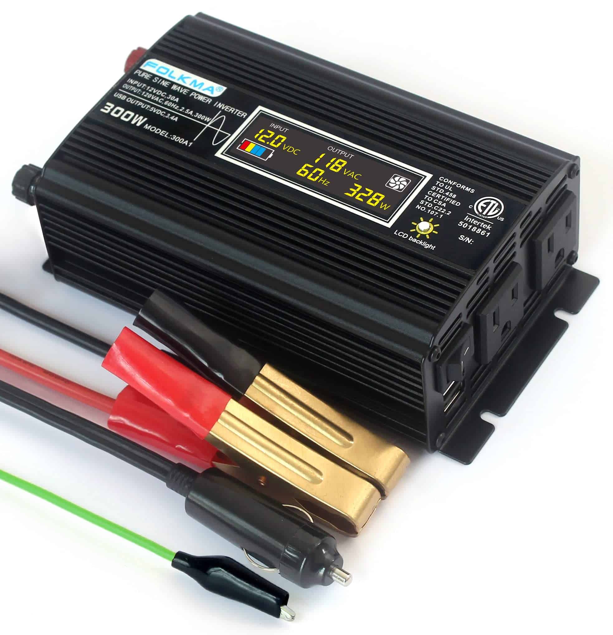 5. Lo que recibes: 1 pieza de inversor de corriente de onda sinusoidal pura FOLKMA 300A1, un par de cables de batería, manual del usuario, garantía de 18 meses y servicio al cliente oportuno.