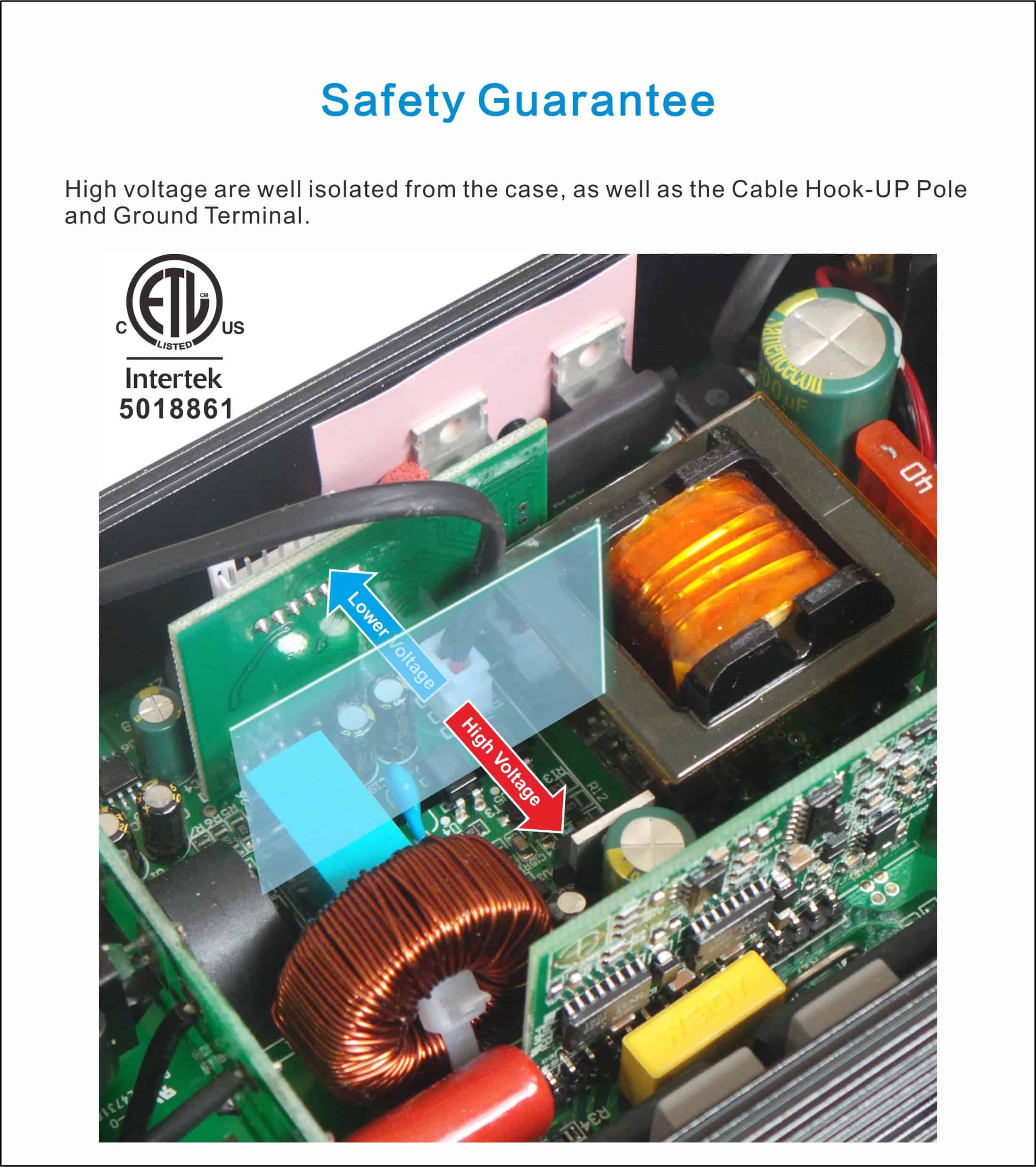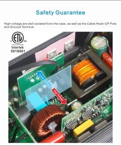 1. Multi protecciones con pantalla LCD y alarma sonora: sistema de protección integral que proporciona protección de polaridad inversa, protección contra sobrecalentamiento, protección de bajo y alto voltaje, protección contra cortocircuitos, protección contra sobrecargas. Con pantalla LCD inteligente y alarma sonora. Puedes estar tranquilo al usarlo.