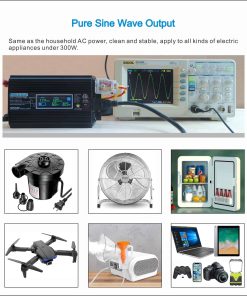 4. Salida de CA de onda sinusoidal pura de 110V: ideal para todo tipo de dispositivos, como portátiles, iPad, luces, ventiladores, consolas de juego, cámaras, nevera para coche. Será uno de tus aliados para viajes, vacaciones, camping y sitios de trabajo.