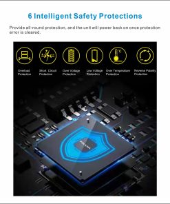 Con seis protecciones, este inversor puede proteger perfectamente su batería y sus electrodomésticos, además de que la salida de AC está bien aislada de la entrada de DC, así como de la carcasa, protegiendo al usuario cuidadosamente. Incluye 1 inversor de corriente de onda sinusoidal pura FOLKMA PSW600A1, un par de cables de batería, manual de usuario, garantía de 18 meses y servicio al cliente oportuno.