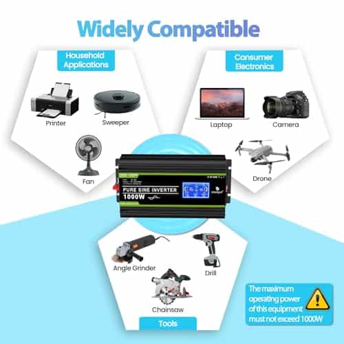 3. Amplias Aplicaciones Ofrece una salida de Onda Sinusoidal Pura ultra limpia que es idéntica a la corriente alterna suministrada por su compañía de servicios, mejora el rendimiento del equipo de AC con nuestra tecnología de baja interferencia (L.I.T), ideal para cargas sensibles como Televisiones, Sistemas de Audio, Herramientas de Velocidad Variable, Impresoras Láser, Laptops, Emergencias, Camping y para el Hogar, RV y más.