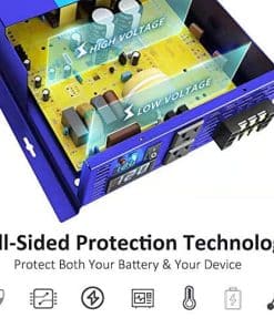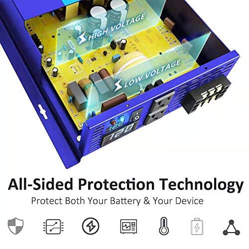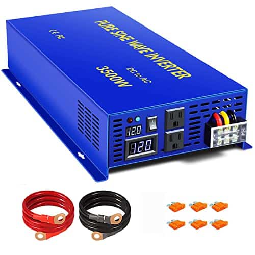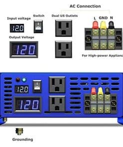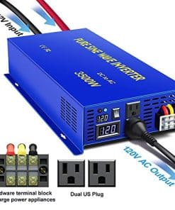 El inversor de corriente de onda sinusoidal pura XYZINVT está diseñado como un generador portátil de energía para alimentar múltiples elementos durante viajes en automóvil y uso doméstico. Como respaldo, es ideal para emergencias por cortes de energía. Siempre puede generar la energía cuando y donde la necesite. Características: 1. Baja interferencia: suministra energía de onda sinusoidal pura ultra limpia que es igual a la energía de la red AC suministrada por su compañía eléctrica. Mejora el rendimiento del equipo de AC con tecnología de baja interferencia, buena opción para televisores, estéreos, etc. Ideal para cargas sensibles como instrumentos de alta precisión. 2. Consumo bajo de energía en inactividad: reduce la pérdida del circuito y mejora la eficiencia de los electrodomésticos. 3. Aplicación fuera de la red: ideal para uso de emergencia siempre y cuando cargue su batería por completo. Puede generar su propia electricidad para su casa allí donde haya cortes de energía o apagones. 4. Dos tomas de CA de EE. UU. y pantalla LED digital: alimente diferentes dispositivos al mismo tiempo sin problemas y controle los cambios de voltaje en todo momento. 5. Operación fácil: se mueve fácilmente a diferentes unidades con conexiones rápidas. También puede utilizarse en sistemas solares y eólicos. Cargue su batería con paneles solares con el controlador de carga solar. Simplemente enchufar y listo. Especificaciones: Entrada DC: 12V Rango de entrada DC: 10V-15V Consumo de corriente en vacío: 0.5A Eficiencia: 85%-90% Voltaje de salida AC: 120V Regulación AC: 3% Frecuencia: 60Hz Toma: Tipo USA Alarma de bajo voltaje: 9.5V-10.5V Apagado por bajo voltaje: 9V-10.5V PAQUETE CONTIENE: 1x Inversor de Corriente de 3500W, 2 juegos de cables de batería, 1 Manual del Usuario, Varios fusibles, nuestra garantía de 12 meses y 100% servicio al cliente.