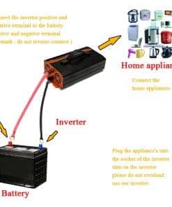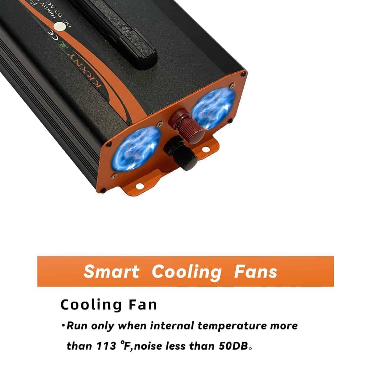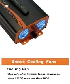 4. Vida útil prolongada del inversor: Diseño de aislamiento de entrada/salida y tecnología de arranque suave, una gran carcasa de aluminio duradera proporciona una protección avanzada contra caídas y golpes. Ventiladores de refrigeración silenciosos e inteligentes, menos de 50 DB al funcionar, ayudan a reducir el calor y prevenir cortocircuitos.