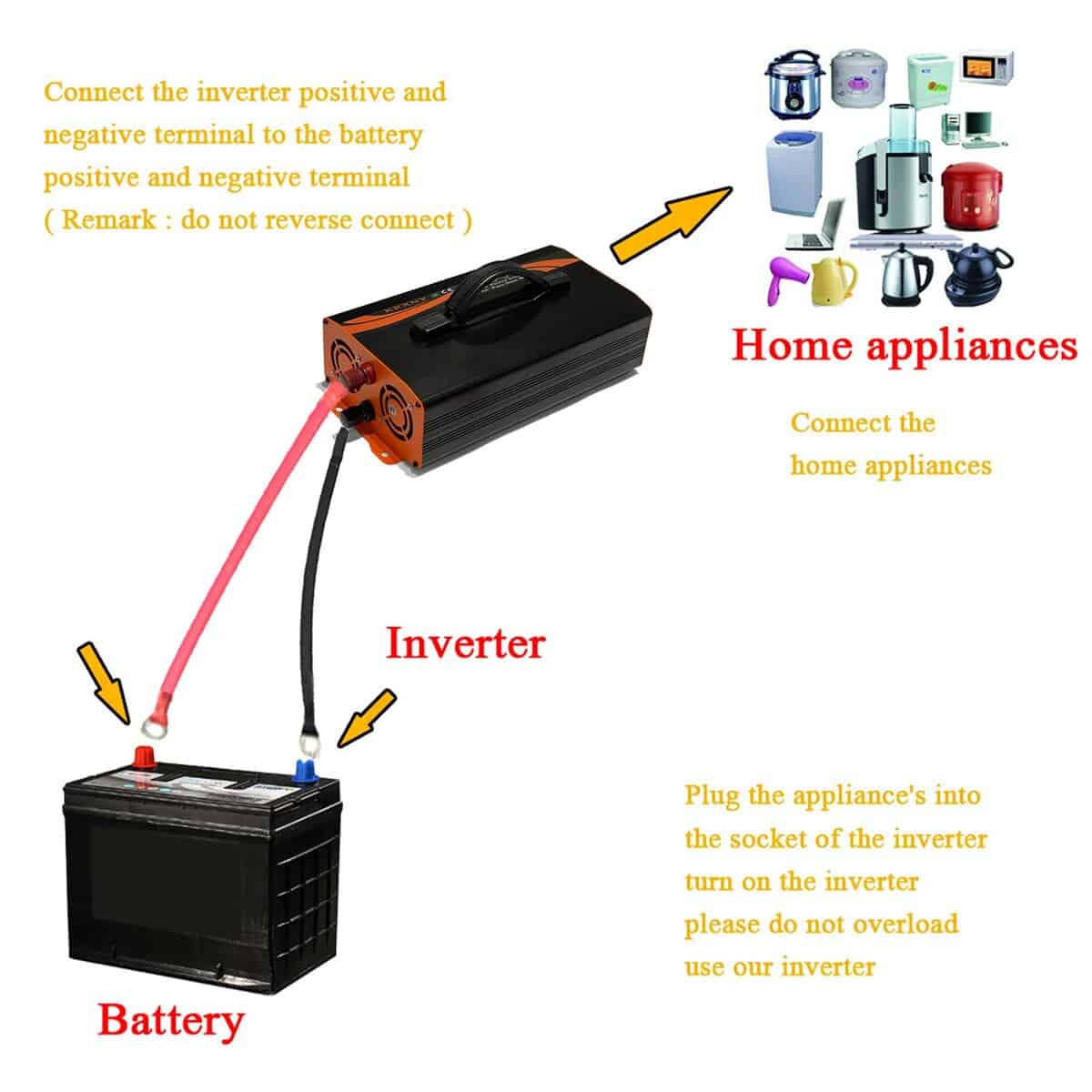 6. Lo que obtienes: Un inversor de onda sinusoidal pura de 1000 vatios, un manual de instrucciones, cables de batería de 2 pies (negro y rojo), un amable y paciente servicio de atención al cliente, fusibles de repuesto, garantía de 12 meses.
