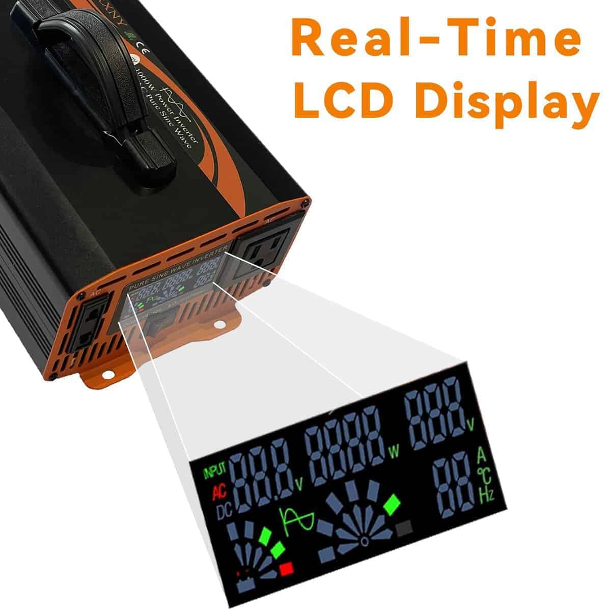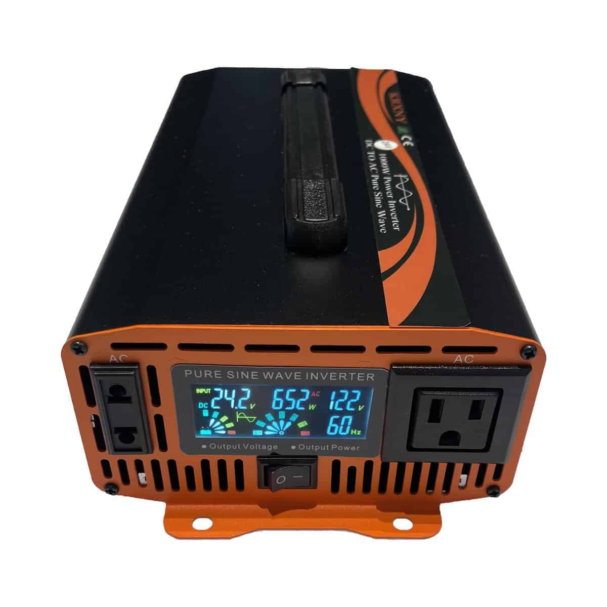 1. Salida de Onda Sinusoidal Pura: Eficiencias de conversión de más del 90% permiten una operación rentable con un impacto ambiental mínimo, salida de onda seno perfecta y suave, igual que la alimentación doméstica/ciudadana, proporciona un máximo de 1000 vatios de potencia continua y 2000 vatios de potencia máxima a una frecuencia de 60Hz, alimenta tus electrodomésticos de 110v 120v ac con una batería de 24v (la tensión de la batería de 20v a 30v es aceptable).