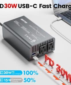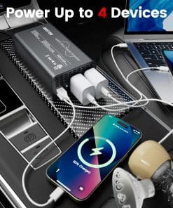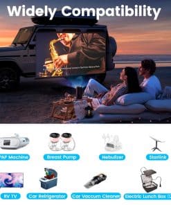 El cargador conversor de 12v DC a 110v AC se puede usar para acampar, exteriores, vacaciones, viajes por carretera, kits de emergencia y más. Este Inversor de Corriente DC-AC de 400W con puertos de carga USB dobles está diseñado para todos los principales portátiles de marca, dispositivos digitales como videocámara, cámara digital, iPad, iPod, teléfono celular, Laptops, Kindles, Tablets, PSP, reproductor de DVD, Starlink, aspiradora de coche, Caja de almuerzo eléctrica, máquina CPAP, Sacaleches, Calienta biberones, Nebulizador, ¡y muchos más!.