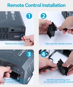 La seguridad es una prioridad con este inversor, que cuenta con 7 protecciones incorporadas, incluida la protección contra sobrecarga, sobretensión, subtensión, alta temperatura, cortocircuito, fuga y protección de polaridad inversa. Además, la carcasa recubierta de acero brinda protección contra golpes y caídas, mientras que los ventiladores inteligentes controlados por temperatura mantienen la temperatura de la máquina baja y minimizan el consumo de la batería, lo que alarga su vida útil. Además, la unidad presenta un interruptor de control extraíble con una pantalla LED portátil que le permite monitorear el estado de funcionamiento y controlar la alimentación de forma remota.