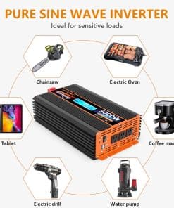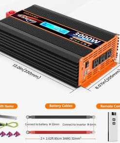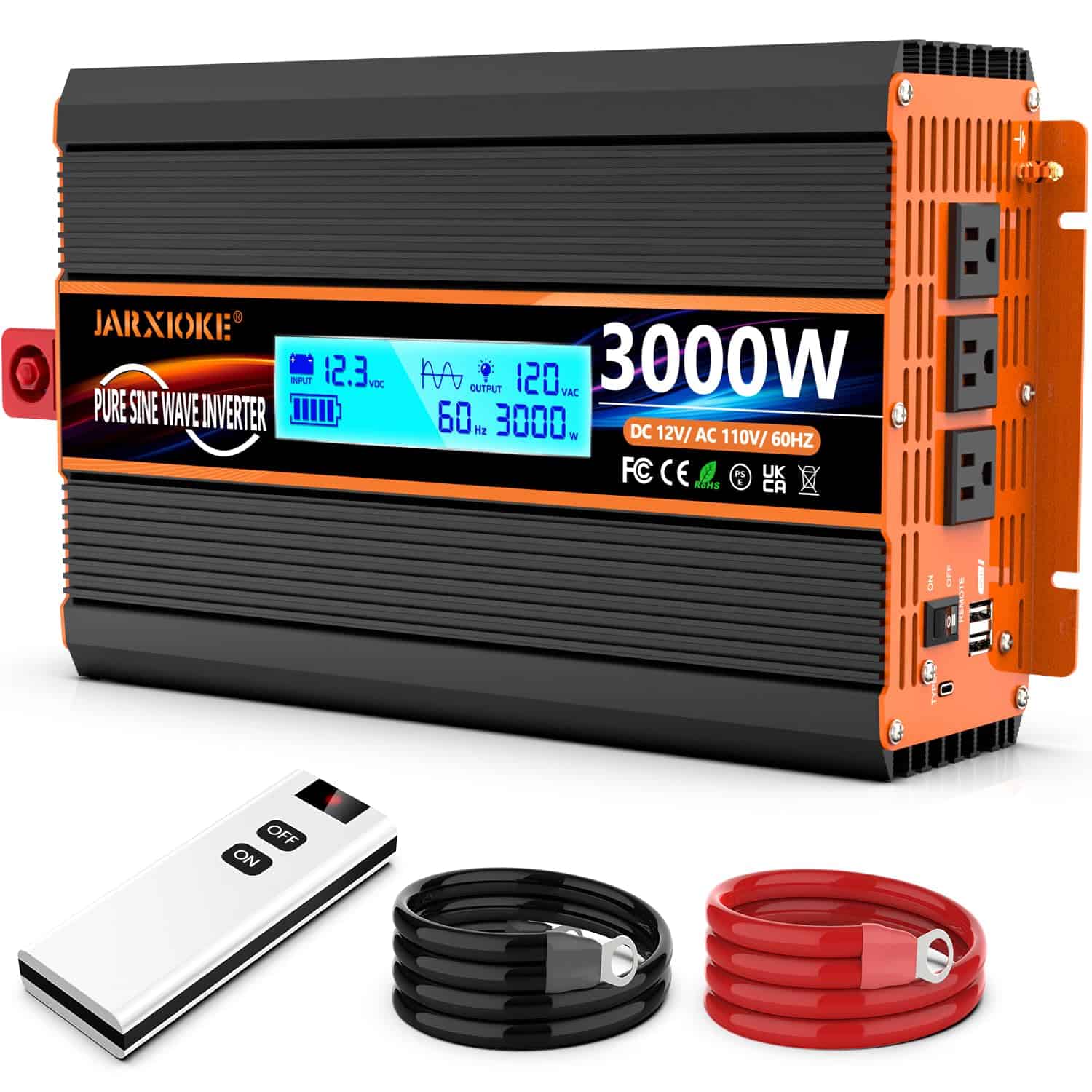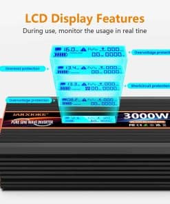El inversor de corriente de 3000W de onda sinusoidal pura JARXIOKE proporciona una potencia continua y estable para dispositivos sensibles. Con una tecnología avanzada de onda sinusoidal pura, convierte eficientemente la corriente continua de 12V en una corriente alterna limpia de 110/120VAC, lo que garantiza un suministro de energía confiable en entornos donde se requiere una fuente de alimentación de calidad. Este inversor es ideal para uso en vehículos recreativos, sistemas solares fuera de la red, campamentos y más. Con características como control remoto, pantalla LCD, múltiples salidas de alimentación y una variedad de protecciones de seguridad, el inversor JARXIOKE es una opción versátil y confiable para sus necesidades energéticas. Proteja sus dispositivos con las múltiples protecciones integradas, que incluyen protección contra sobretensiones, cortocircuitos, sobrecalentamiento y polaridad inversa. Además, el diseño de enfriamiento inteligente y duradero garantiza una larga vida útil y un rendimiento óptimo. Con una garantía de 12 meses y soporte postventa dedicado, puede estar seguro de la calidad y confiabilidad de este inversor de corriente de onda sinusoidal pura de 3000W.