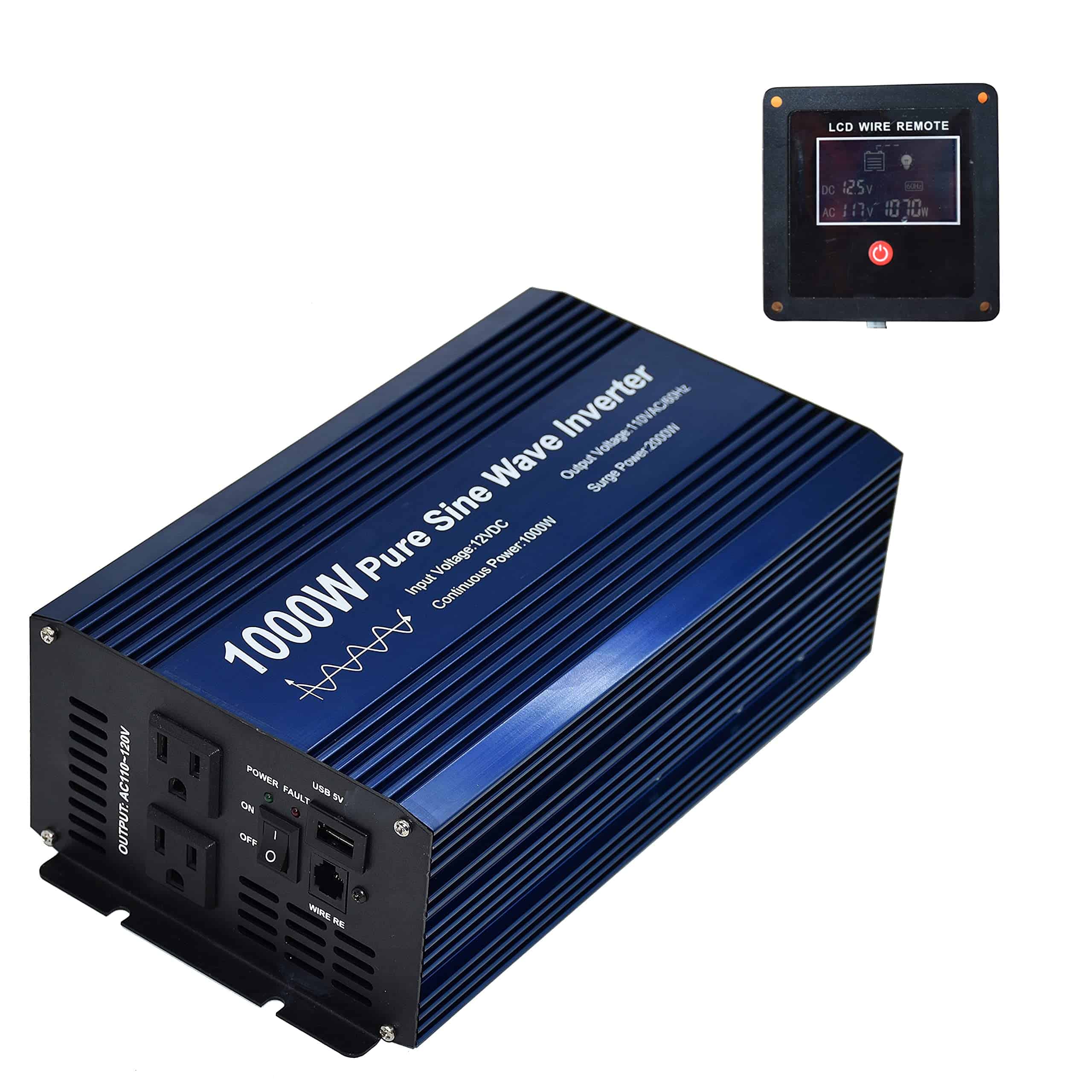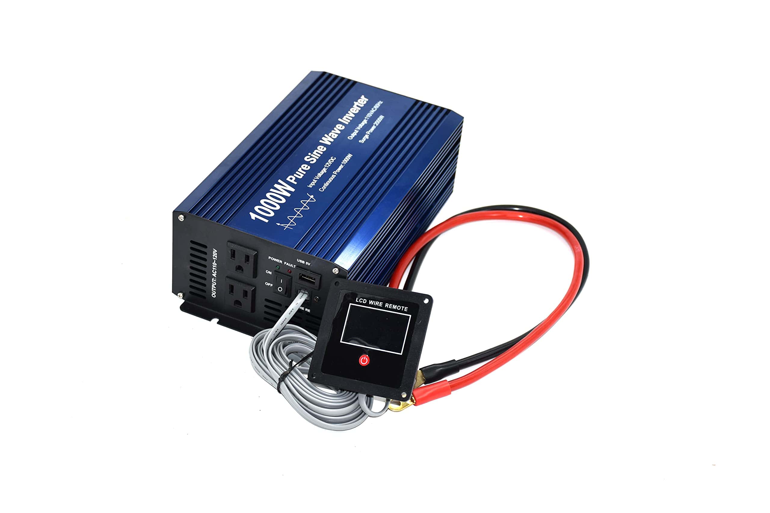 Atención: Las cargas inductivas necesitan aproximadamente de 3 a 10 veces la potencia nominal para arrancar, por ejemplo, refrigerador, máquina de café, aspiradora. Verifique doblemente que su inversor tenga la potencia suficiente para arrancar estas cargas. Si la potencia de sobrecarga del inversor no es suficiente para arrancar la carga, necesitará comprar un modelo de mayor potencia. Simplemente es decir que: Un inversor de potencia nominal de 1000W no puede arrancar todos los electrodomésticos inferiores a 1000W. Siempre asegúrese de tener suficiente suministro de energía CC si está utilizando una salida de mayor potencia (batería de mayor tamaño o mantenga el motor de su automóvil encendido mientras ejecuta cargas de alta potencia). Inversor de Onda Sinusoidal Pura 1000W con doble toma Potencia Continua: 1000W Potencia Máxima: 1200W Potencia de sobrecarga: 2000W Forma de onda de salida: Onda sinusoidal pura THD: 4 por ciento Eficiencia (carga total): 85 por ciento Voltaje de entrada: DC12V (10-15V) Consumo de corriente sin carga: Voltaje de salida: 110-120Vac 60Hz Con puerto USB de 5V 2A y control remoto con cable ON/OFF. Protecciones: Sobrecarga, bajo voltaje, sobre voltaje, cortocircuito de salida, desconexión por sobrecalentamiento Con ventilador de refrigeración controlado térmicamente (alta velocidad) Guía de operación para el control remoto LCD con cable Para utilizar este kit de control remoto LCD ON/OFF, DEBE girar el interruptor manual ON/OFF a la posición OFF. Para mantener un uso continuo y suficiente, es mejor mantener el motor de su automóvil encendido si está utilizando continuamente un electrodoméstico de alta potencia. Consulte el manual operativo LCD en el paquete.