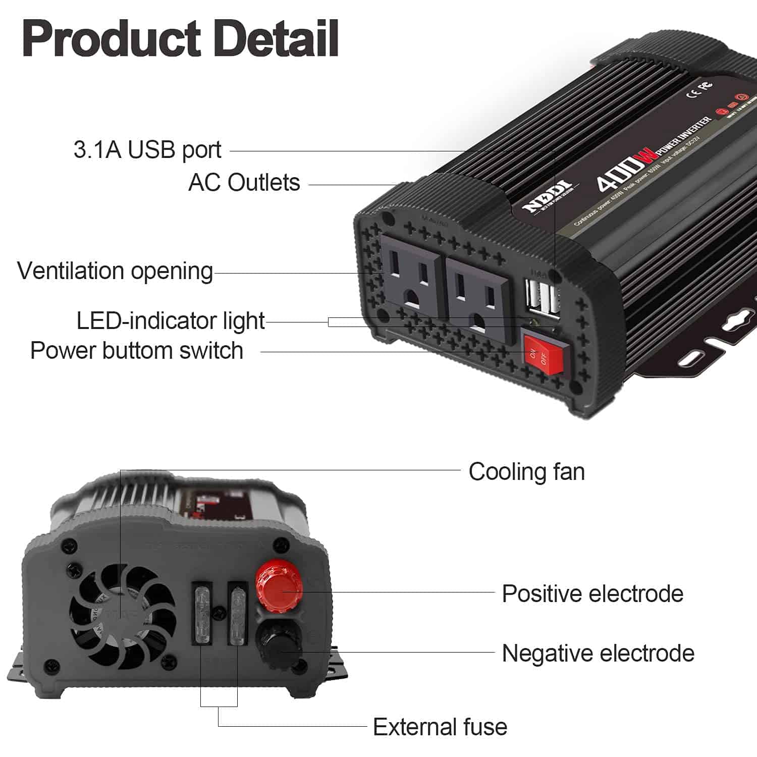 Inversor de Corriente para Automóvil de 400W, Convertidor