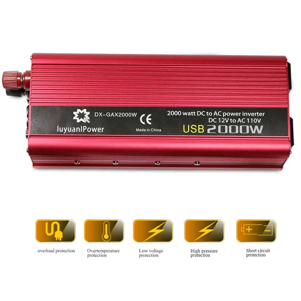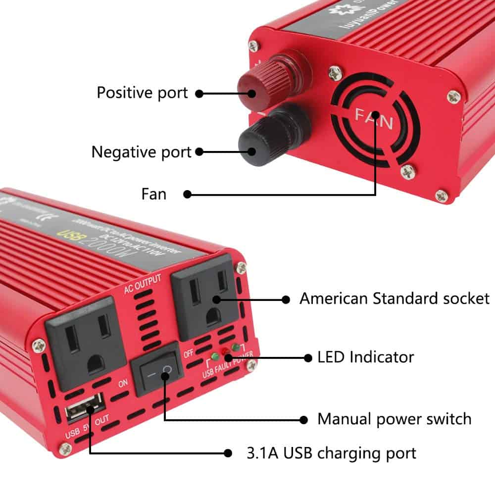 Inversor de 1000w ampliamente útil para acampar, exteriores, vacaciones, viajes por carretera e incluso para cargar artículos del hogar.
