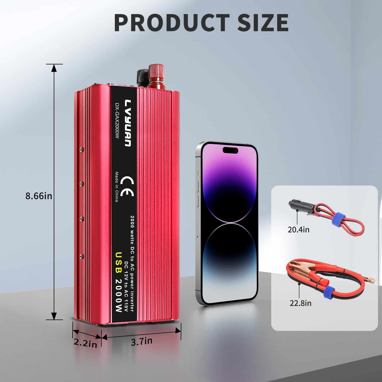 Inversor de corriente para coche de 12v a 110v, evita el sobrecalentamiento, mantiene la temperatura de trabajo en un rango fresco y seguro, ayuda a prevenir cortocircuitos.
