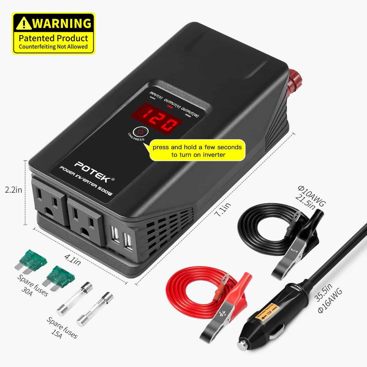 Inversor de corriente Potek 500w DC 12V a AC 110V Adaptador